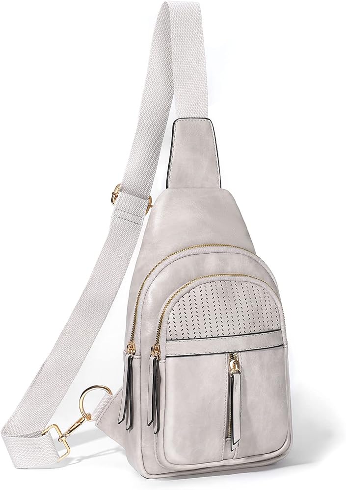 SUOSDEY Fanny Pack حقائب كروس للنساء حقيبة بحمالة جلدية نباتية للنساء محفظة بحمالة كروس باللون الرمادي والأبيض