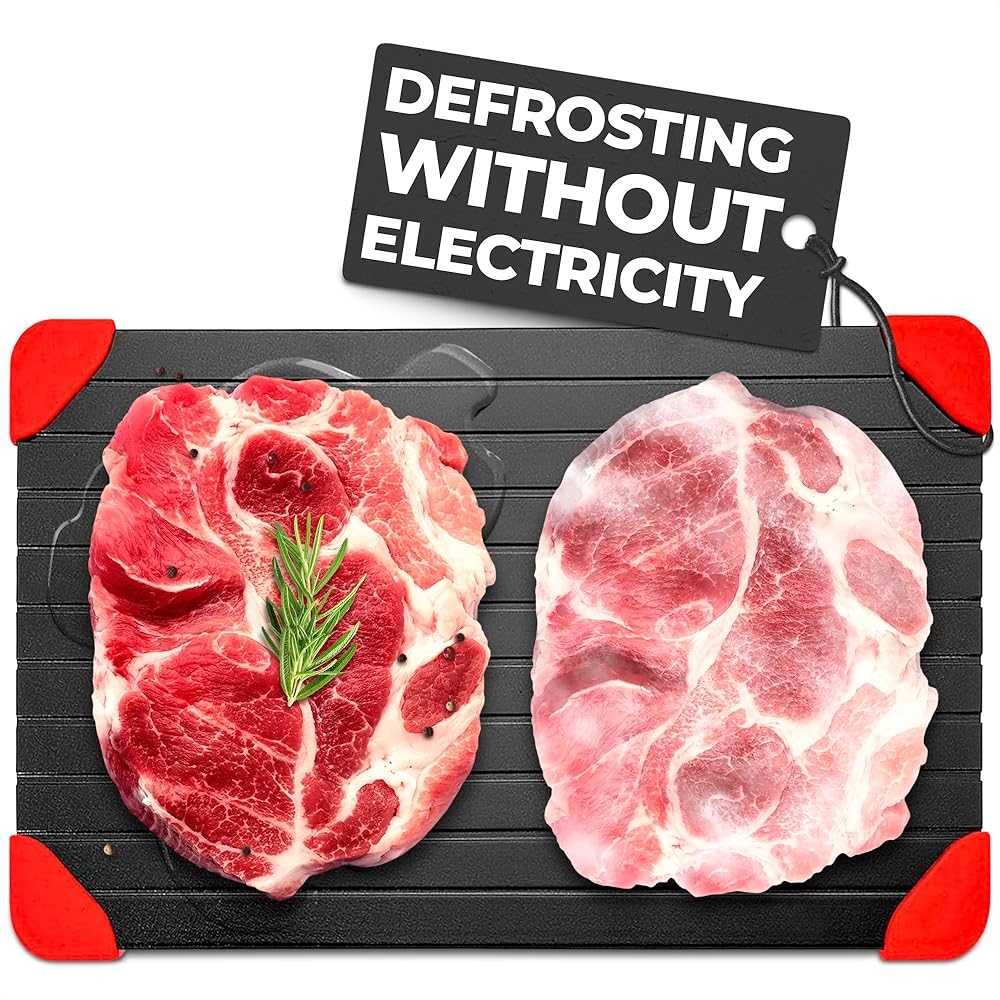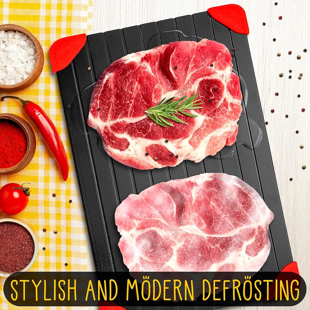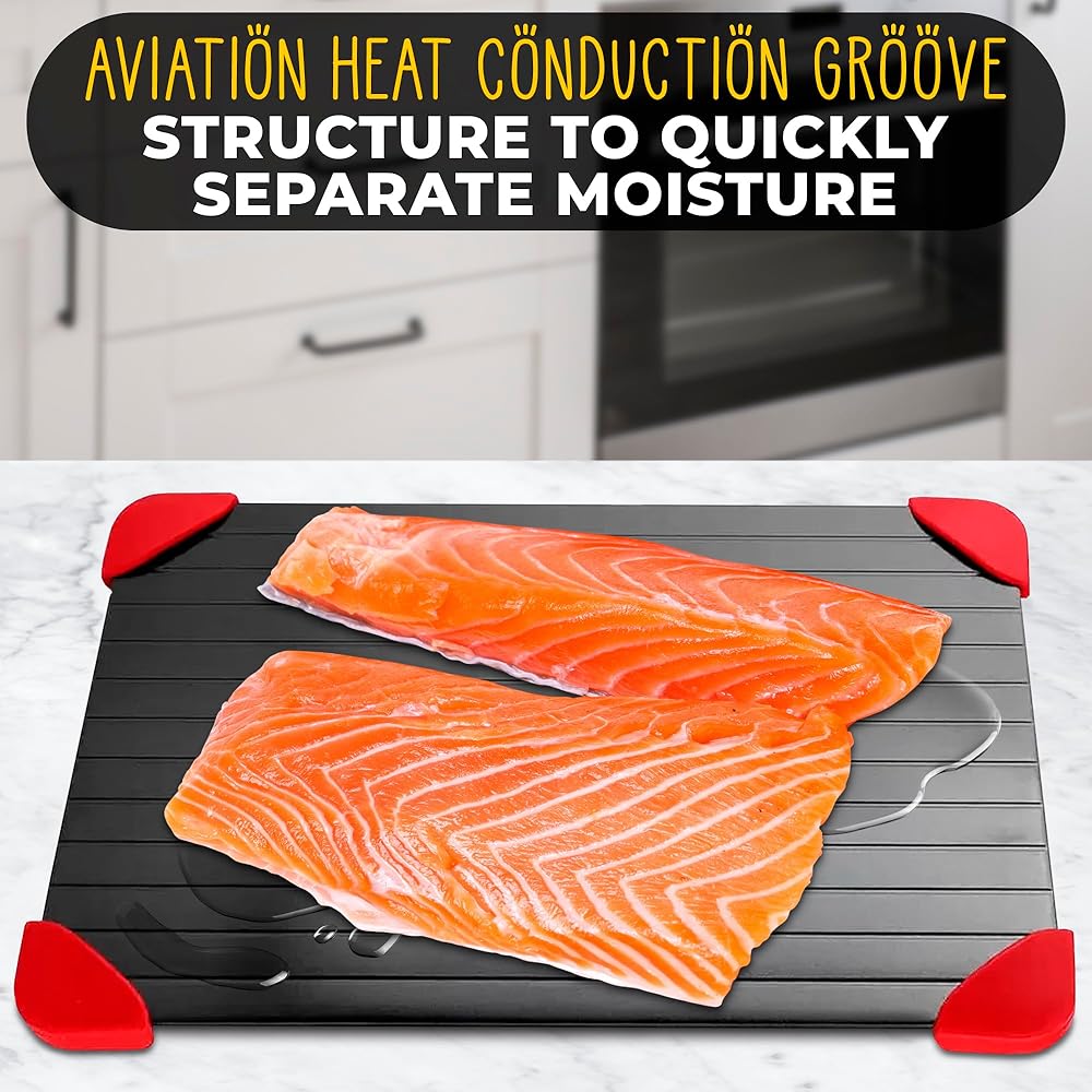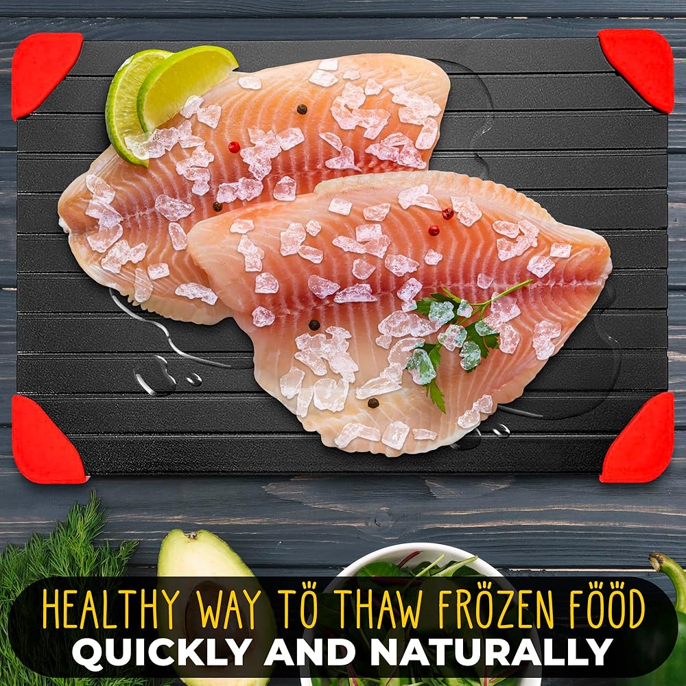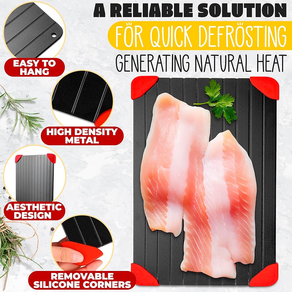• لوحة تذويب مريحة: بدون رائحة أو كهرباء، صينية إزالة الجليد من اللحوم هي الطريقة لتذويب الطعام بسرعة مع الحفاظ على جميع مذاق طعامك الأصلي، وتوليد الحرارة وتسريع الذوبان.