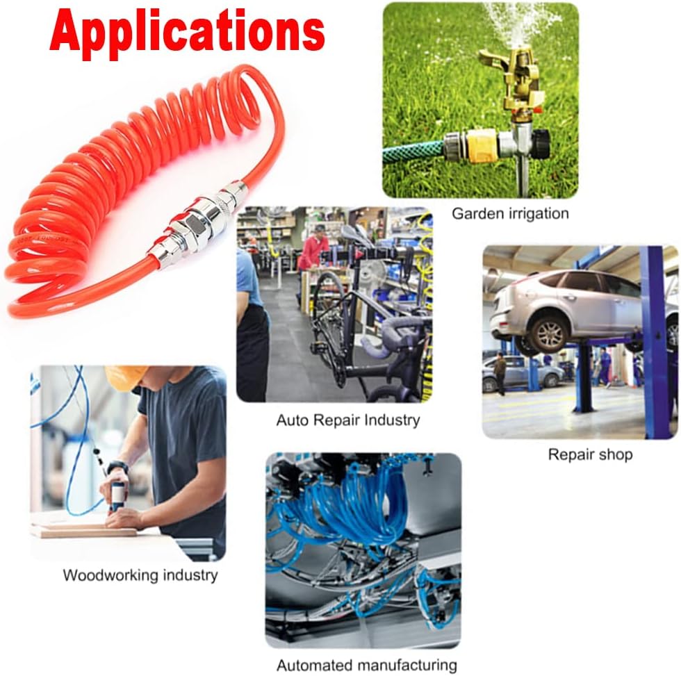The air pipe is equipped with male and female quick connectors SP20+PP20, which are made of synthetic metal casting, strong and wear-resistant, anti-rust and corrosion-resistant, dual-sealing design, high pressure resistance, no air leakage, and tighter joints.