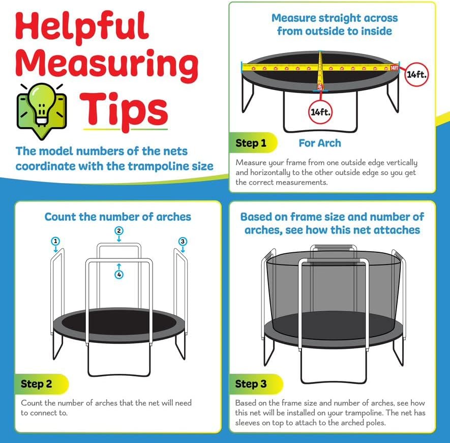 Universally Compatible: Enhance the jumping capability of your trampoline with our premium quality trampoline net. Our top of the line trampoline safety net has universal compatibility for 13 ft square trampoline with 4 arches from any brand out there.