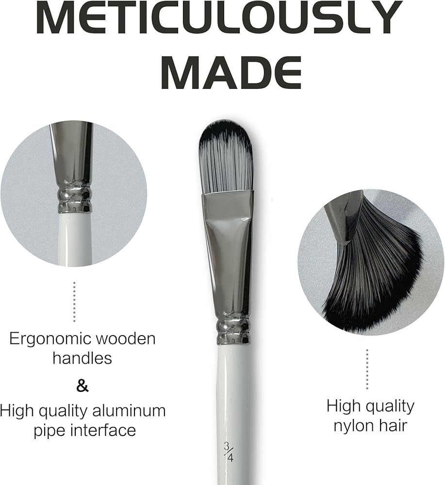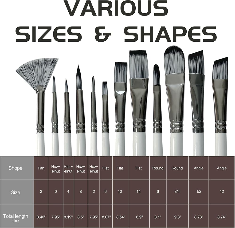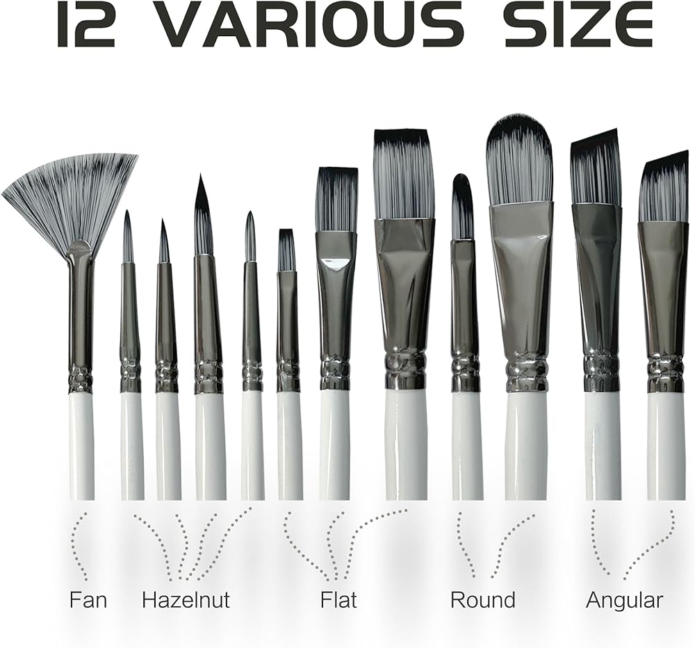 🎨 مجموعة قيمة رائعة - مجموعة مكونة من 12 فرشاة طلاء أكريليك نايلون بأحجام مختلفة تأتي مع مسطحة #14، #10، #6 - مستديرة 3/4، #6 - زاوية #1/2، #12 - بندق #0، #2 ، #4، #8، #2، فرش المروحة، سيكون لديك الأدوات التي تحتاجها إلى فرش الطلاء الزيتي، لإنشاء مجموعة متنوعة من احتياجات التصميم.