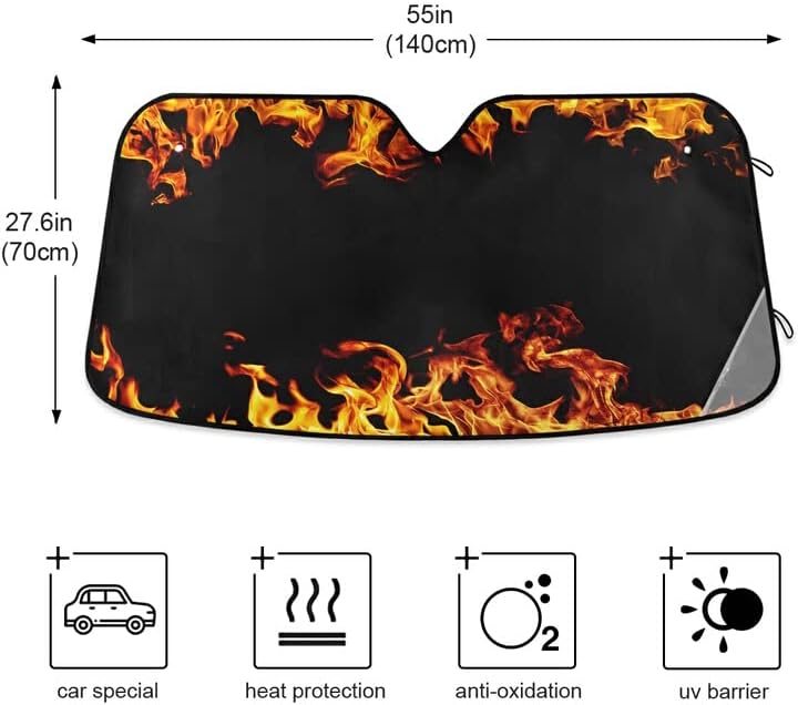 • وظيفية: مصنوعة من رقائق الألومنيوم العاكسة مع مادة الفقاعات، تحمي مظلة الزجاج الأمامي سيارتك بشكل فعال من أضرار أشعة الشمس الحارة والأشعة فوق البنفسجية. يقلل درجة الحرارة في السيارة بكفاءة، ويحافظ على برودة المقاعد وعجلة القيادة عند العودة إلى سيارتك.