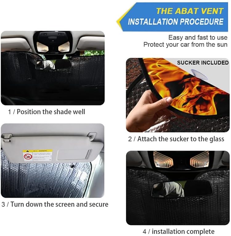 • تركيب سريع: ما عليك سوى إدخال مظلة الشمس في الزجاج الأمامي الخاص بك، وهناك 4 ملحقات أكواب شفط متضمنة لربط واقي الشمس بالزجاج لزيادة الثبات.