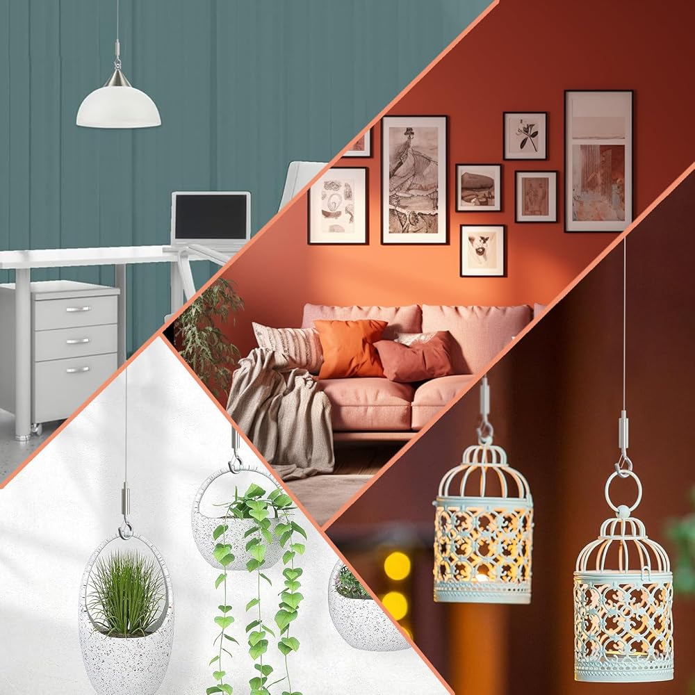 【رفع مستوى المعيشة في المنزل】ادخل إلى عصر جديد من جماليات المنزل. بالمقارنة مع أدوات التعليق التقليدية، يوفر السلك الفضي القوي الخاص بنا لمسة عصرية تتناغم بين الأسلوب والوظيفة، مما يزيد من جاذبية منزلك البصرية.
