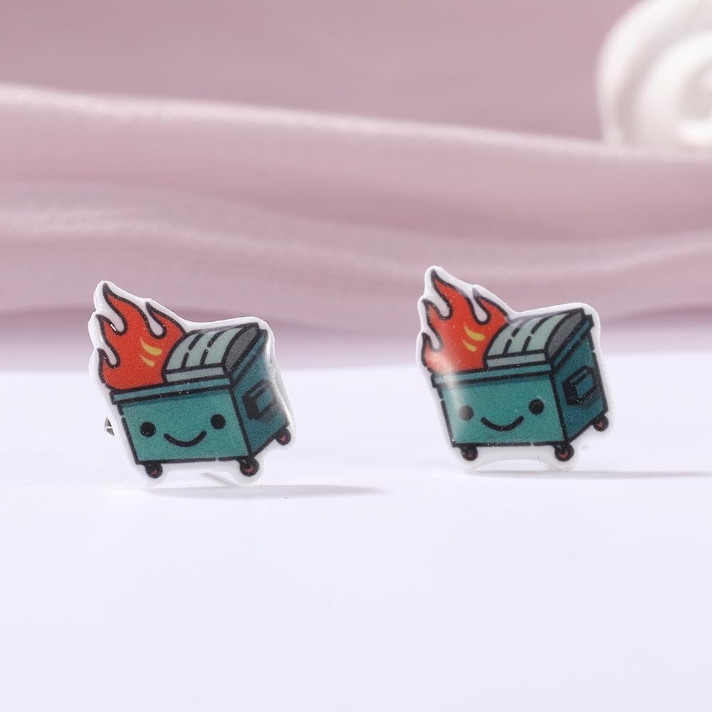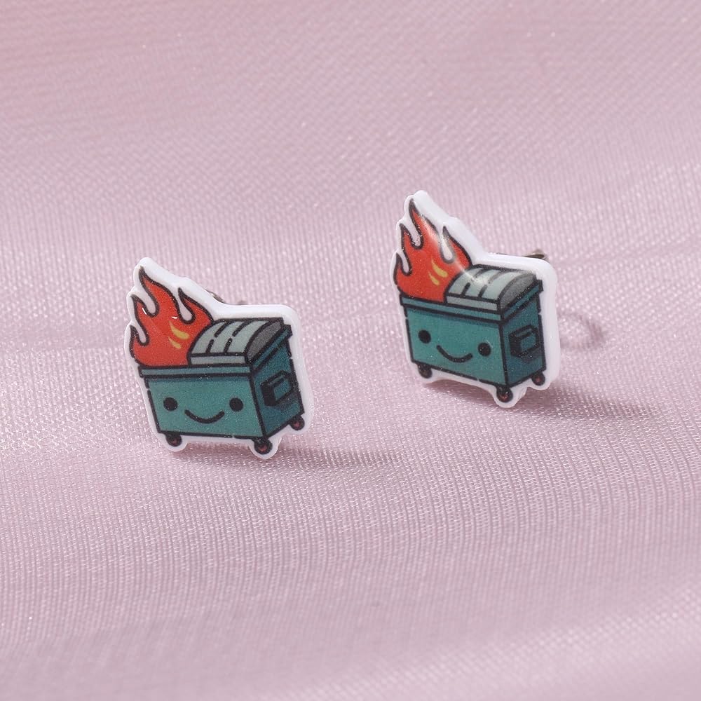 أقراط Kawaii Dumpster Fire المرصعة: أقراط Dumpster Fire بتصميمات كلاسيكية ومضحكة، تضيف مظهرًا فريدًا إلى مظهرك، وتلبي احتياجاتك المختلفة.