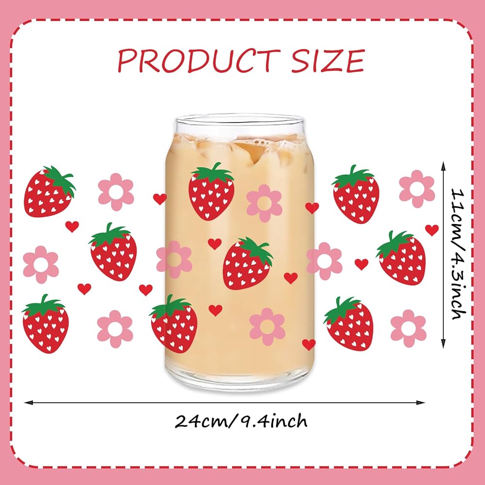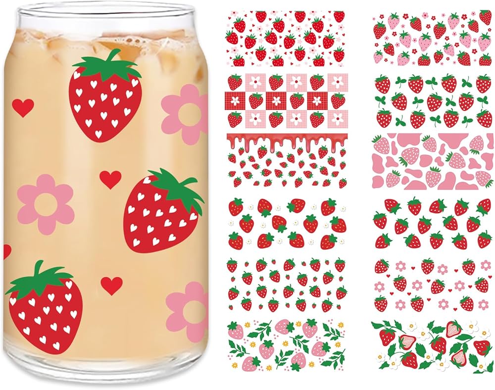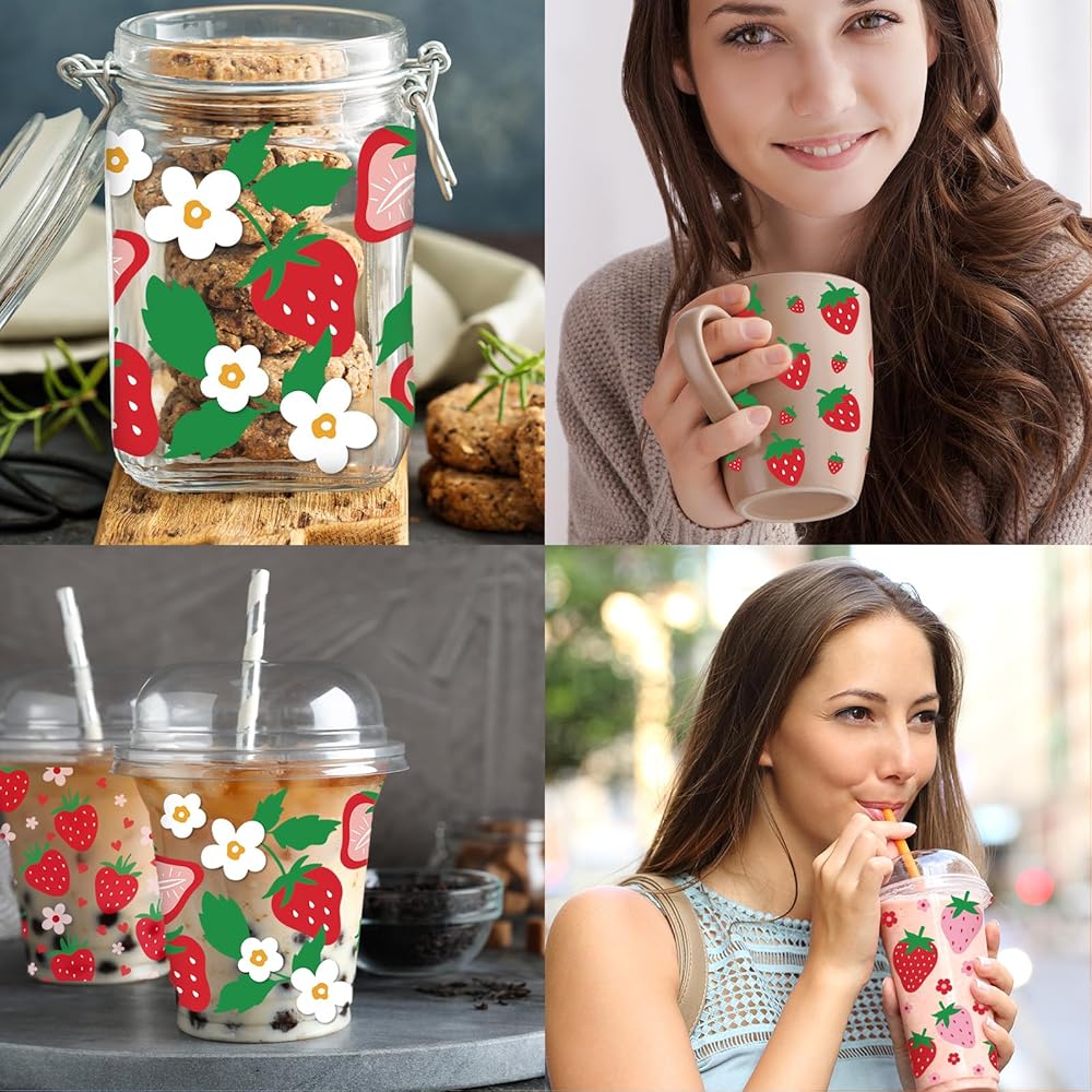 • Strawberry Theme - The cup wrap transfers have strawberry, flower, cow print, checkered patterns, etc., mainly in red and pink color, full of vitality, perfect for cup decorations.