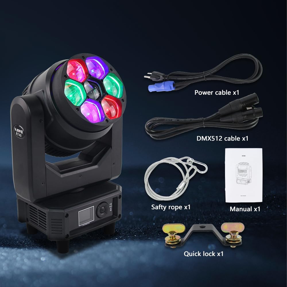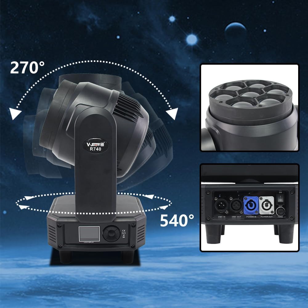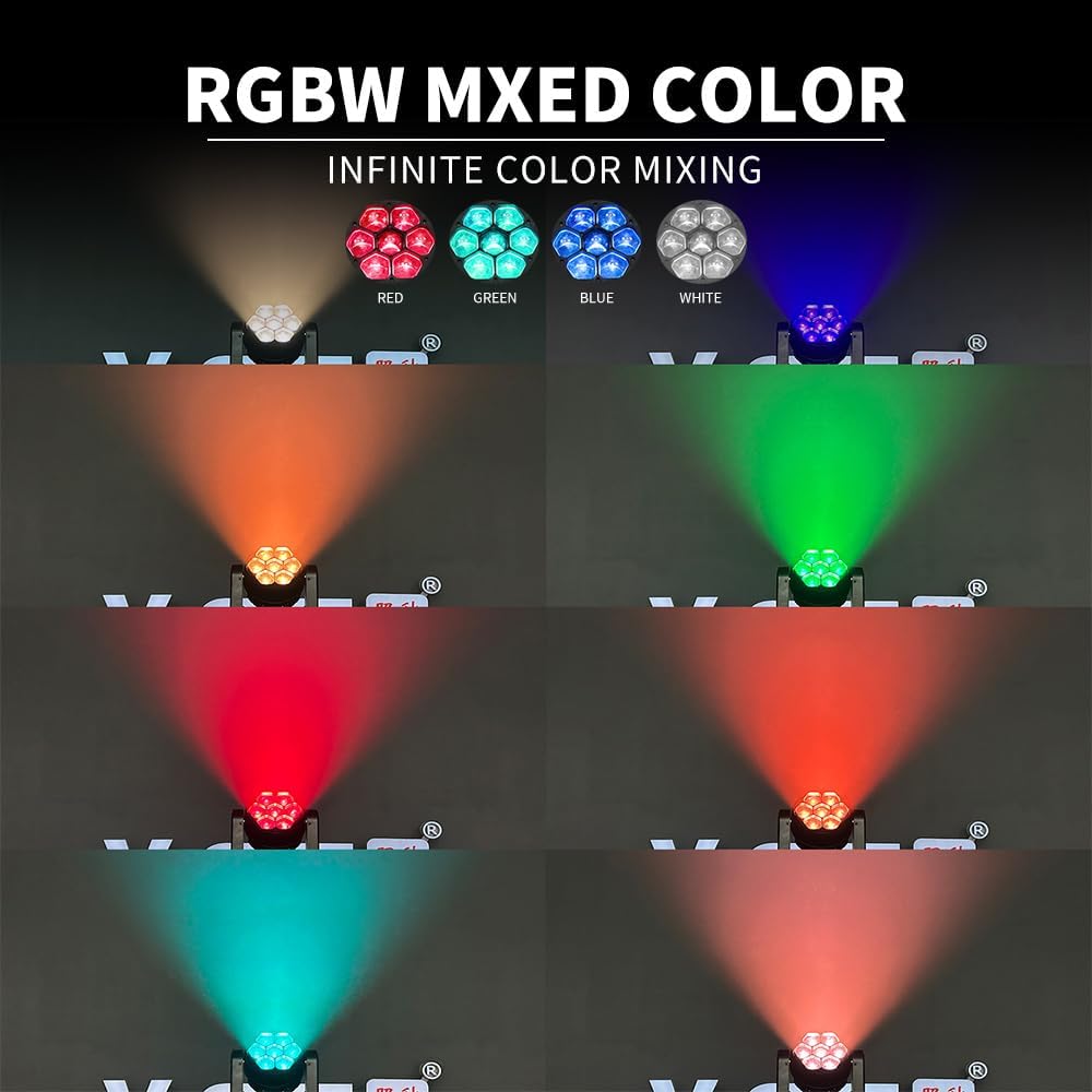 VSHOW R740 7 * 40W RGBW 4in1 LED Splash Moving Wash Light - 7 تركيبات LED Beam Wash Zoom Lights Mini DMX512 Wash Led Stage Lighting DJ Show Disco Lights