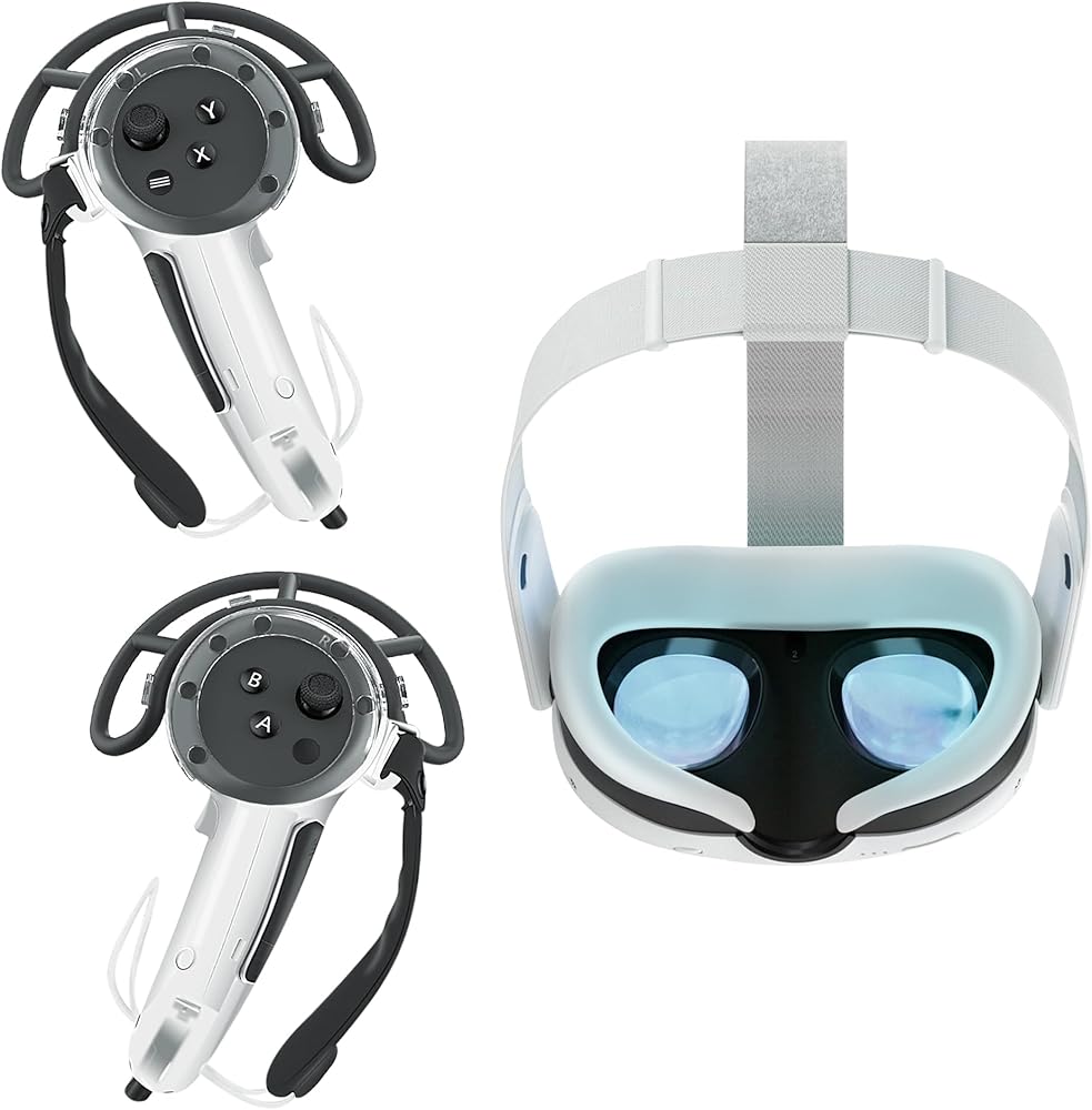 Introducing the Ermorgen Silicone Cover Compatible for Quest 3 Accessories - the ultimate protection kit designed exclusively for your Quest 3 controller! Enhance your gaming experience and keep your valuable controller safe with this comprehensive set of accessories. Crafted with precision and attention to detail, our Quest 3 controller protector ensures that your device remains scratch-free, even during intense gaming sessions. The extended controller grips cover provides a comfortable and secure grip, allowing you to fully immerse yourself in the virtual world without worrying about slipping or discomfort. But that's not all - our adjustable straps offer a customizable fit, ensuring that the controller stays securely in your hand no matter how intense the gameplay gets. Say goodbye to accidental drops and hello to uninterrupted gaming! We understand that comfort is key, which is why our set also includes a silicone face cover. This soft and breathable cover not only protects your controller from sweat and dirt, but also provides a comfortable and hygienic gaming experience. No more discomfort or irritation on your face - just pure gaming bliss. And to top it off, we have included silicone thumb grip caps to enhance your control and precision. These caps fit snugly onto the thumbsticks, providing improved grip and reducing thumb fatigue. With these thumb grip caps, your movements will be precise and accurate, giving you the competitive edge you need to dominate your gaming sessions. With the Ermorgen Silicone Cover Compatible for Quest 3 Accessories, you can now fully enjoy your Quest 3 gaming experience without worrying about damaging your valuable controller. It's time to take your gaming to the next level with this must-have protective kit. So why wait? Upgrade your gaming gear today and unleash the full potential of your Quest 3!
