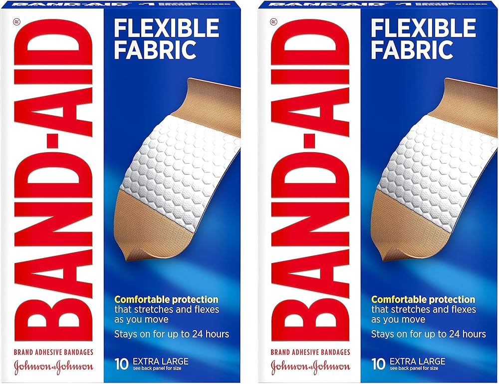 • Pack of 2 - 10-count extra-large Band-Aid Brand Flexible Fabric Adhesive Bandages for first aid and wound protection of minor wounds, cuts, scrapes and burns