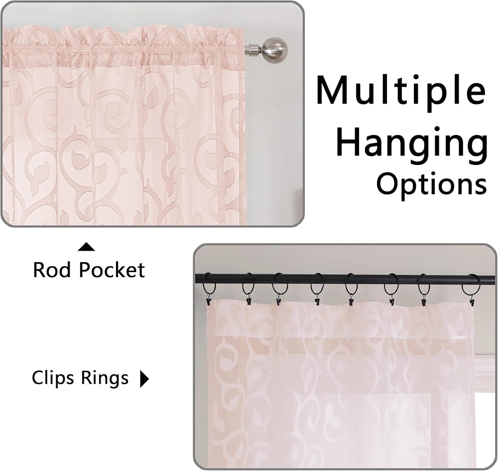 【تشمل العبوة】: تحتوي كل عبوة على لوحة واحدة من الستائر الشفافة بطول 35.56 سم، كل ستائر نافذة بعرض 137.16 سم × طول 35.56 سم، يوجد فتحتان في ستائرنا، وهي رأس أنيقة للغاية مقاس 1.5 سم وجيب قضيب مقاس 5.08 سم مناسب لمعظم قضبان الستائر، مما يجعل ستائر الفوال الشفافة سهلة التعليق أو الانزلاق. تتوفر مقاسات متعددة، يرجى قياس نافذتك أولاً للاختيار الصحيح.