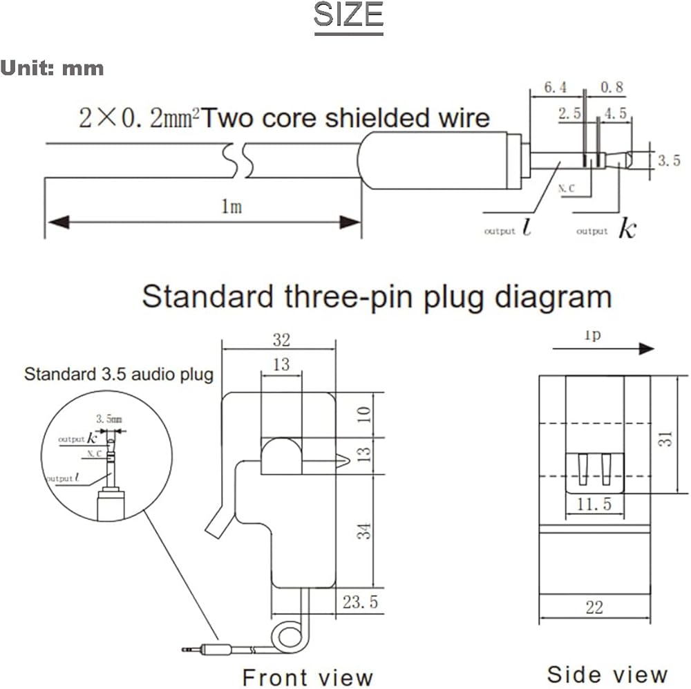 The standard Φ3.5 three-core plug output, the current and voltage two kinds of output.Hanging installation, lead output.For AC motors, lighting equipment, air compressors and other current ,monitoring and protection.