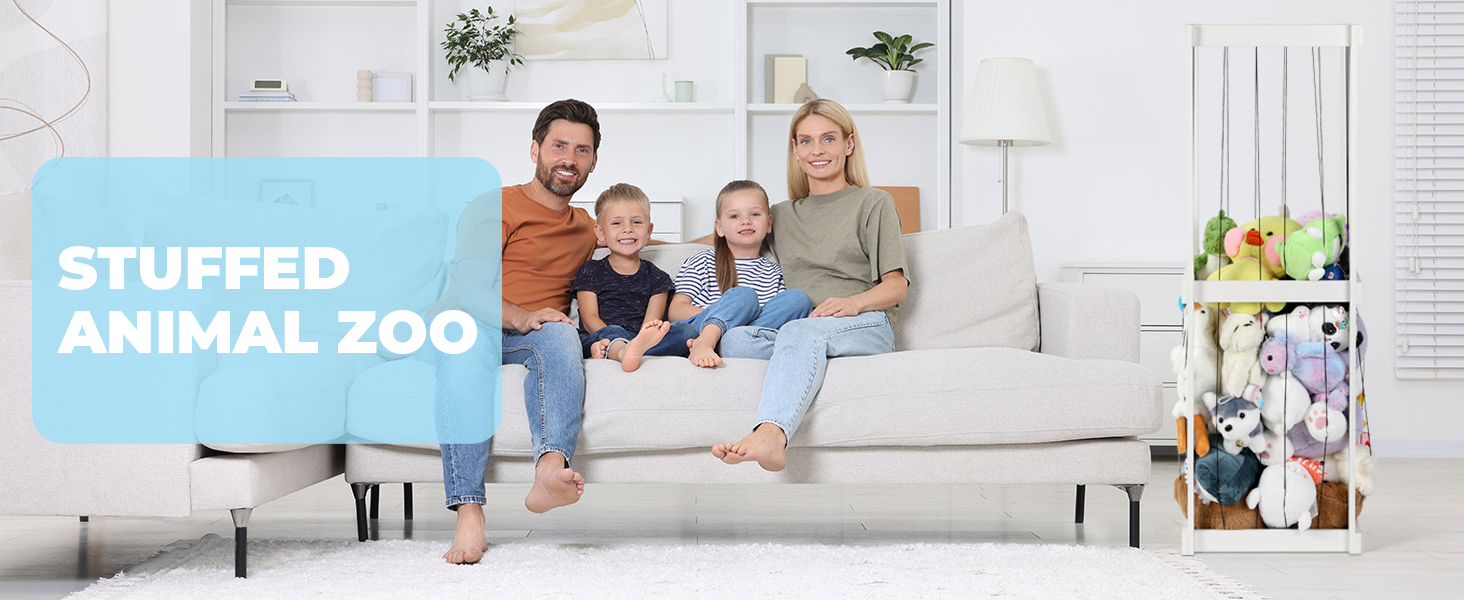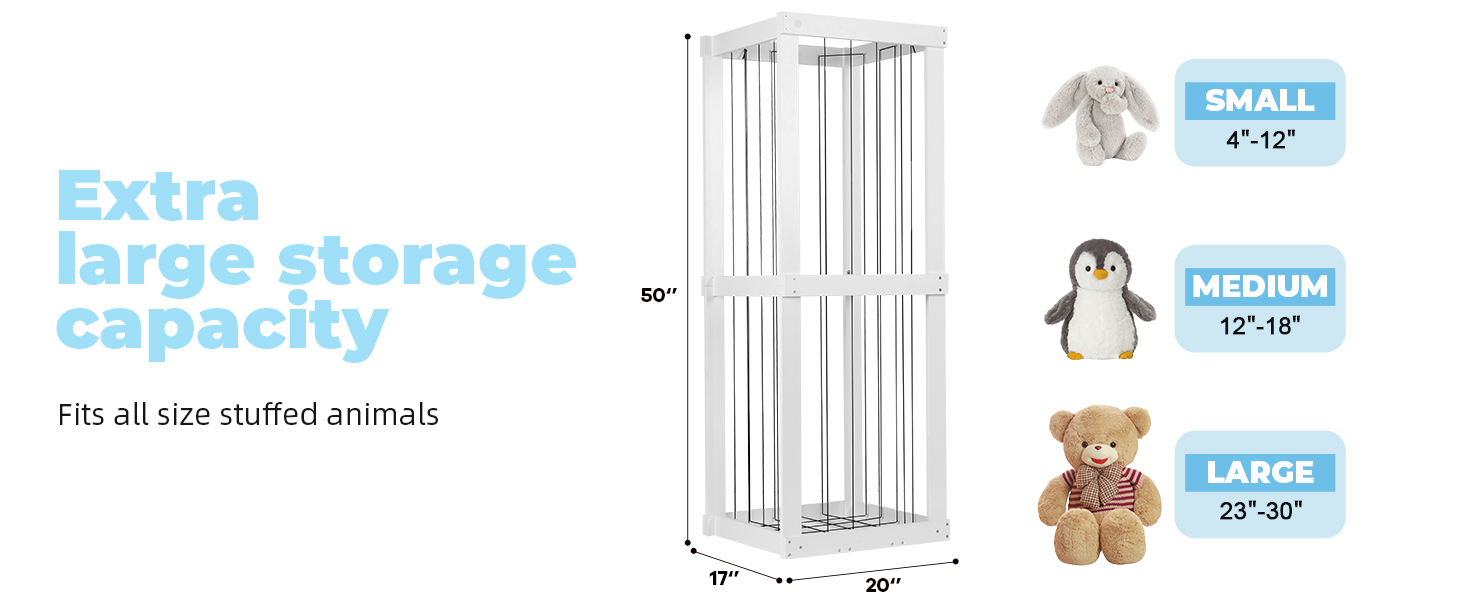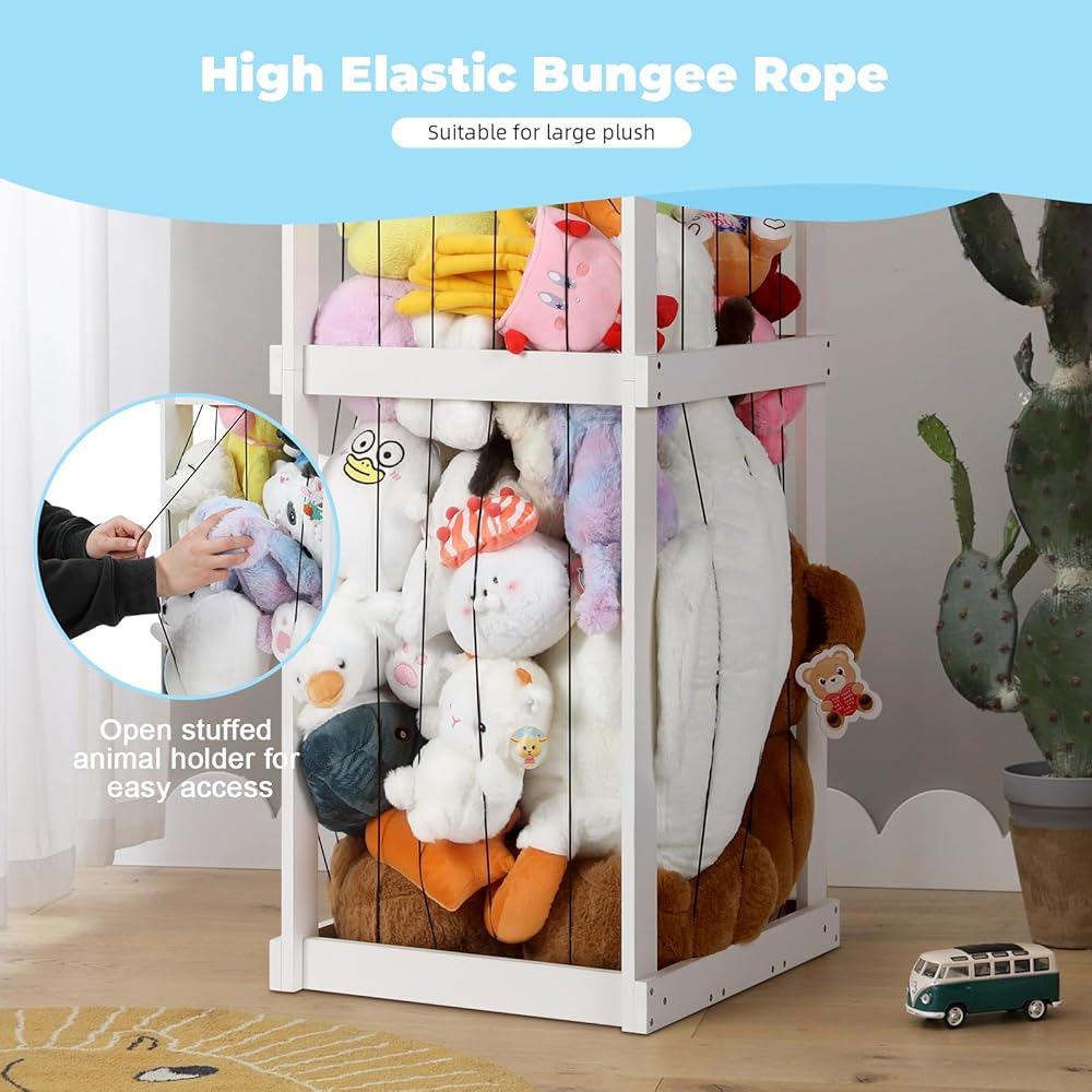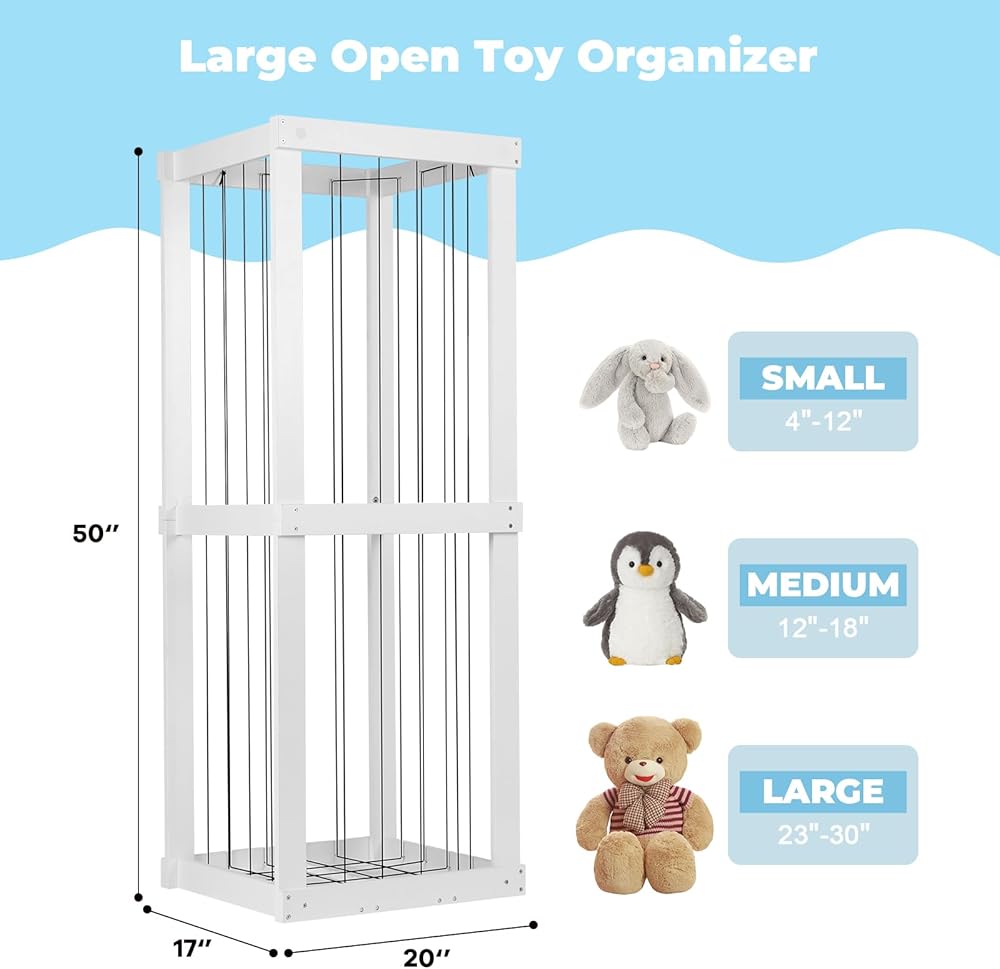 تخزين ألعاب حديقة الحيوان المحشوة، منظم ألعاب للأطفال، مقاس 50 بوصة × 20 بوصة × 17 بوصة، مادة خشبية حامل حيوانات محشوة كبير جدًا مع شريط مطاطي لغرفة نوم الأطفال وزاوية غرفة اللعب. هدية للأولاد والبنات، أبيض