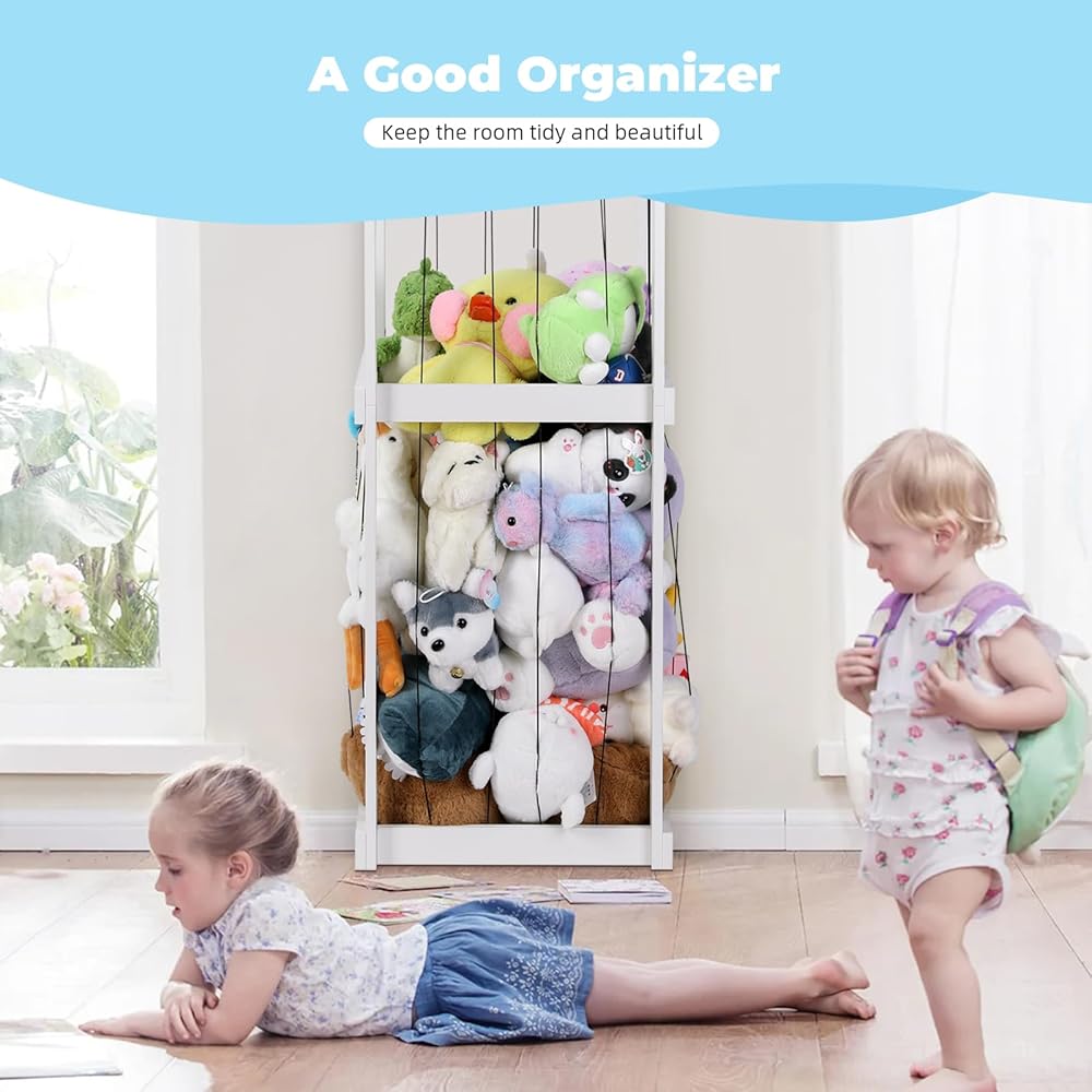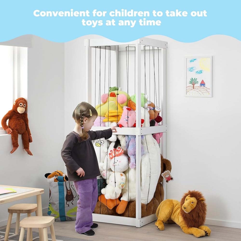 🎁【اختيار الهدية】هذا خيار هدية رائع مناسب للأطفال من جميع الأعمار. يمكنها حمل الدمى من أي حجم وهي أيضًا خيار رائع للمستخدمين من غير الأطفال. إنها طريقة فريدة لزيادة مساحة التخزين دون ازدحام الغرفة. تشطيب الخشب الأبيض أنيق ولن يتعارض مع ديكور غرفتك.
