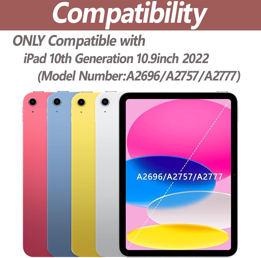 • التوافق: متوافق فقط مع iPad الجيل العاشر مقاس 10.9 بوصة 2022 (رقم الموديل: A2696/A2757/A2777). وهو غير متوافق مع أي نماذج أخرى. يرجى التحقق من رقم الطراز الذي يبدأ بالحرف "A" على الجزء الخلفي من جهاز iPad الخاص بك قبل الشراء