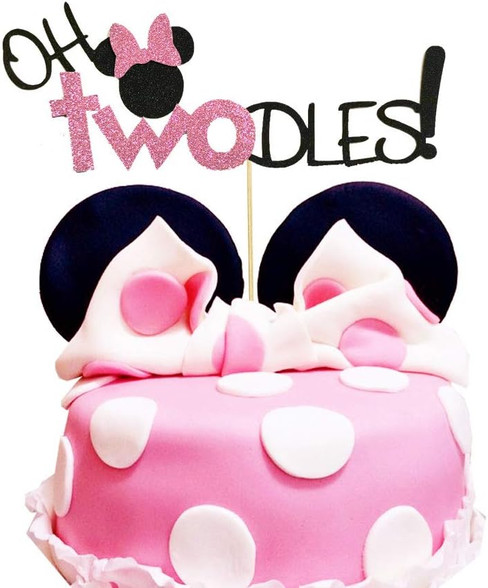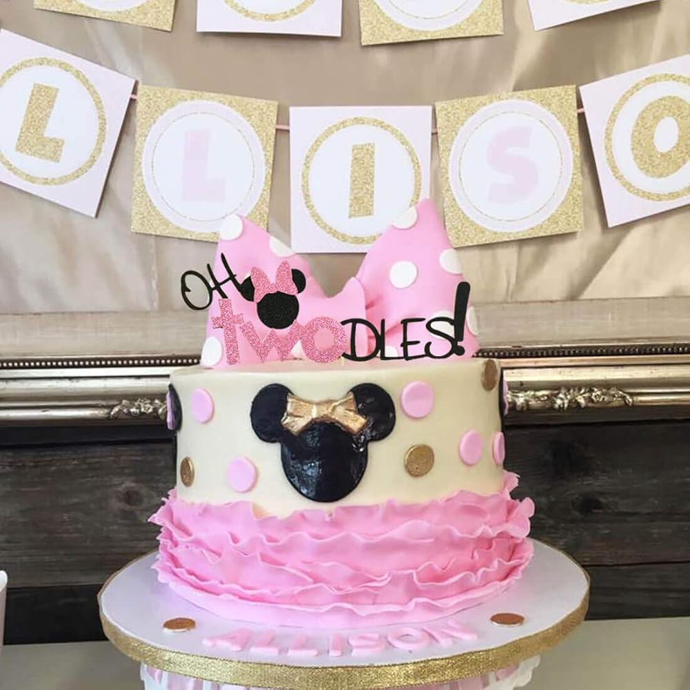- Made of no-shedding glitter card stock. Pink Mouse OH TWO DLES cake topper is perfect for Pink Mouse Second birthday party decorations.