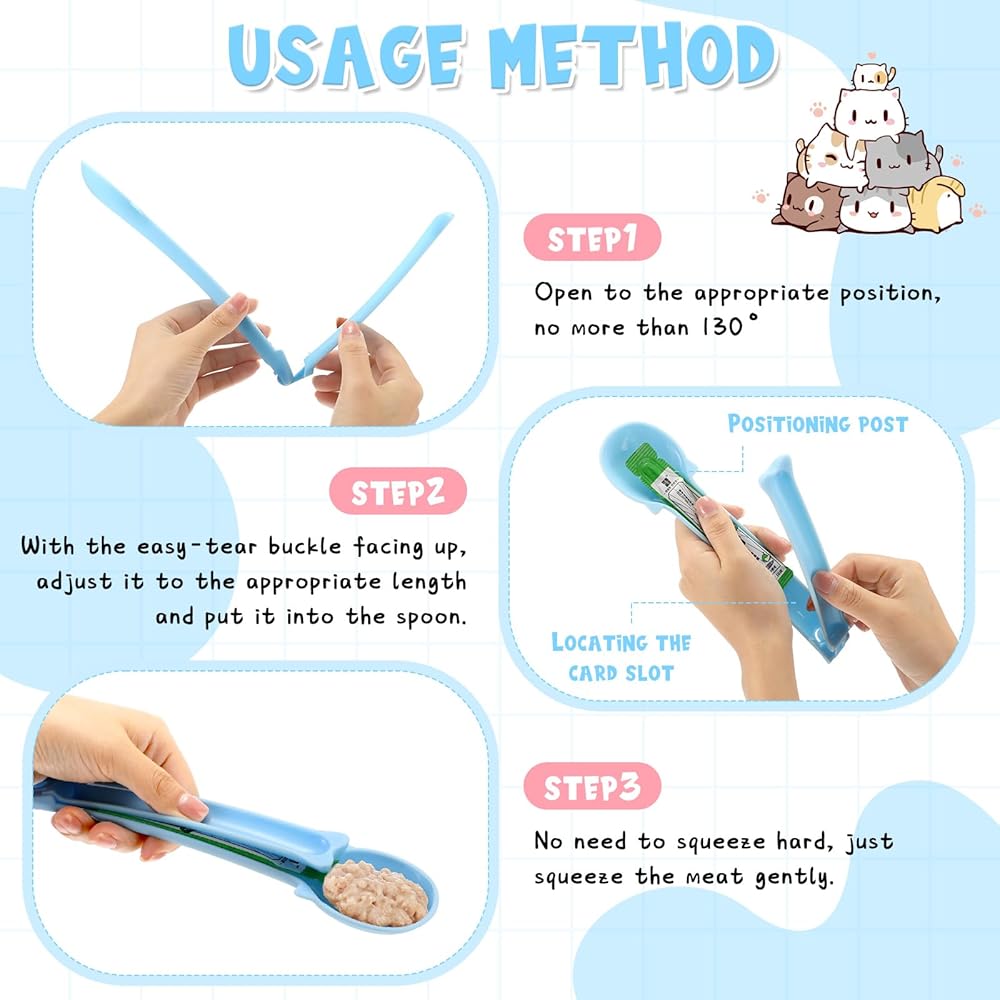 With their pink and blue colors, the wet treat dispenser is visually appealing and easily attract cats making the feeding process much easier. Moreover, the clever design combines functionality with style, presenting a feeding spoon that cat owners will be proud to use and display.