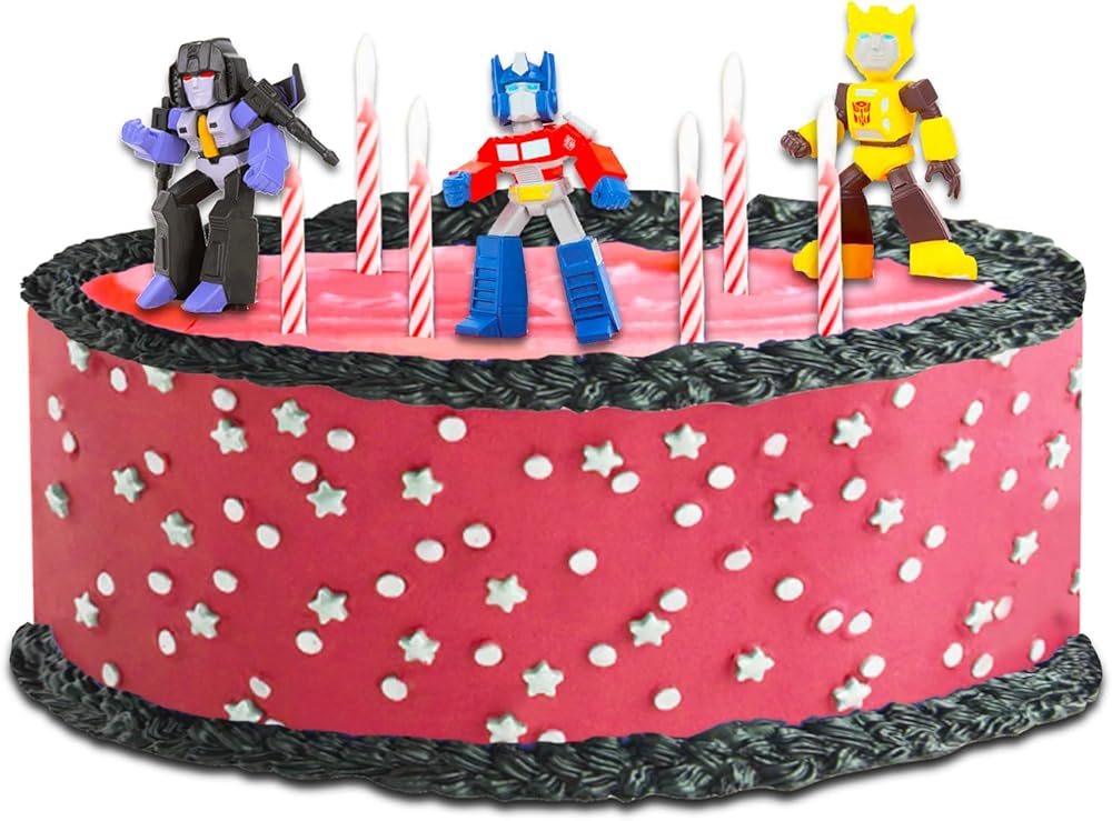 Officially licensed Transformers cake topper figures for fans of all ages also includes bonus Transformers temporary tattoos.