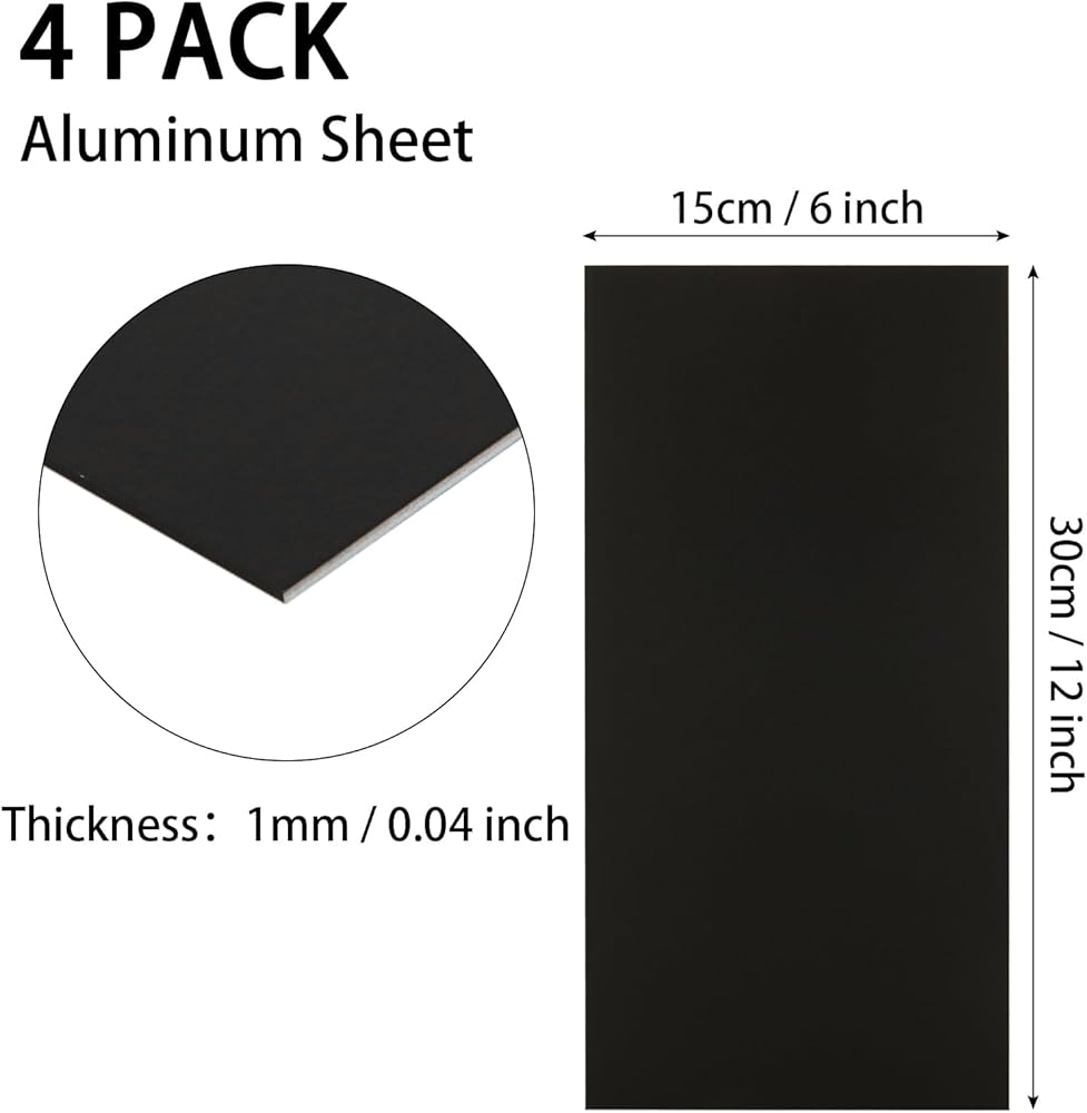4 Pack Aluminum Sheet, Black Laser Engraving Blanks, Anodized Aluminum Metal Plate for Crafting Printing