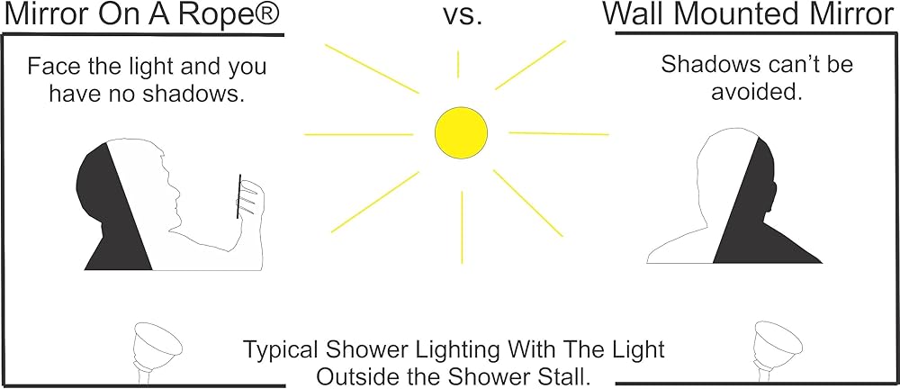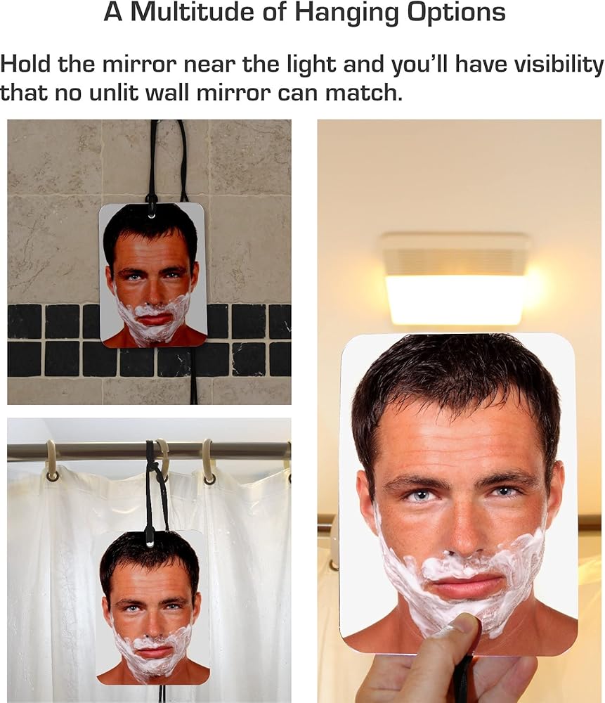 شاهد نفسك بشكل أكثر وضوحًا مما يمكن أن يكون ممكنًا مع أي مرآة مثبتة على الحائط. عدم كونك محاصرًا على الحائط يعني أنك لست محاصرًا في الظل أثناء الاستحمام. ما عليك سوى وضع حبل المرآة حول رقبتك وإمساك المرآة بيدك. قم بتدفئة المرآة بوضعها تحت تيار الدش الدافئ أو اتركها تسخن بشكل طبيعي بينما تتدلى من رقبتك. بمجرد أن تصبح المرآة دافئة، يتم تنشيط خصائص مقاومة الضباب ولن تلتصق بالمرآة.