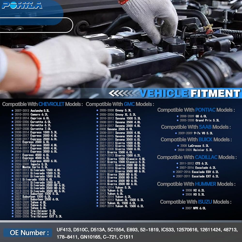 - 【تركيب السيارة-1】مجموعة من 8 ملفات إشعال متوافقة مع شيفروليه أفالانش 2007-2013، كامارو 2010-2015، كابريس 2011-2017، كولورادو 2009-2012، كورفيت 2005-2013، إكسبريس 1500 2008-2014، إكسبريس 2500/إكسبريس 3500 2008-2020، إكسبريس 4500 2009-2020، إمبالا 2006-2009، مونت كارلو 2007، سيلفرادو 1500 2007-2013، سيلفرادو 2500 HD/سيلفرادو 3500 HD 2008-2018، سوبربان 1500 2007-2014، سوبربان 2500 2007-2013، سوبربان 3500 اتش دي 2018، تاهو 2007-2014، تريل بليزر 2006-2009، تريل بليزر EXT 2005-2006.