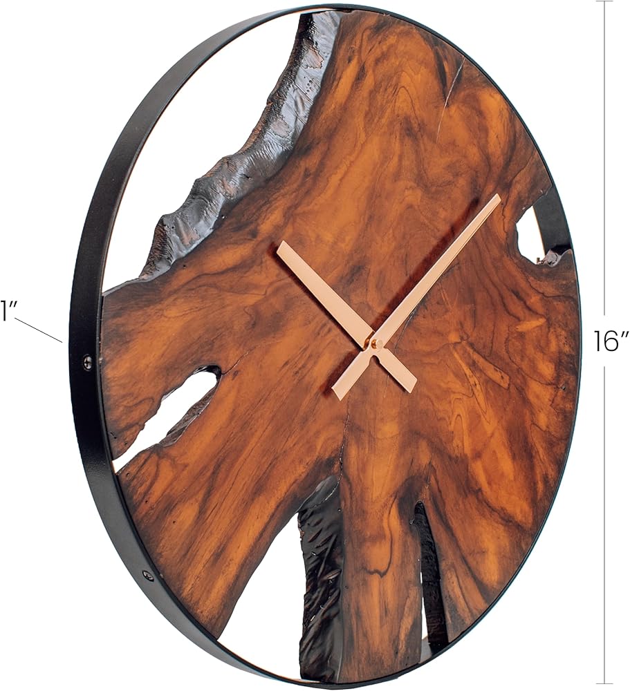 ساعة حائط خشبية ريفية - مينا عصري فريد من نوعه من خشب الساج مع إطار معدني أسود كبير، ديكور غرفة المعيشة صامت غير موقوت، مصنوع يدويًا لتزيين المكتب المنزلي، فريد من نوعه - مقاس 16 بوصة