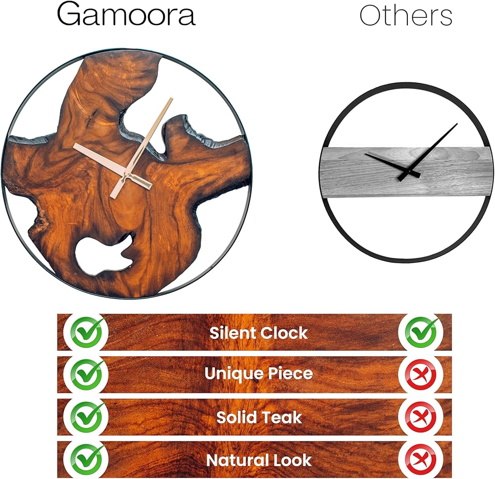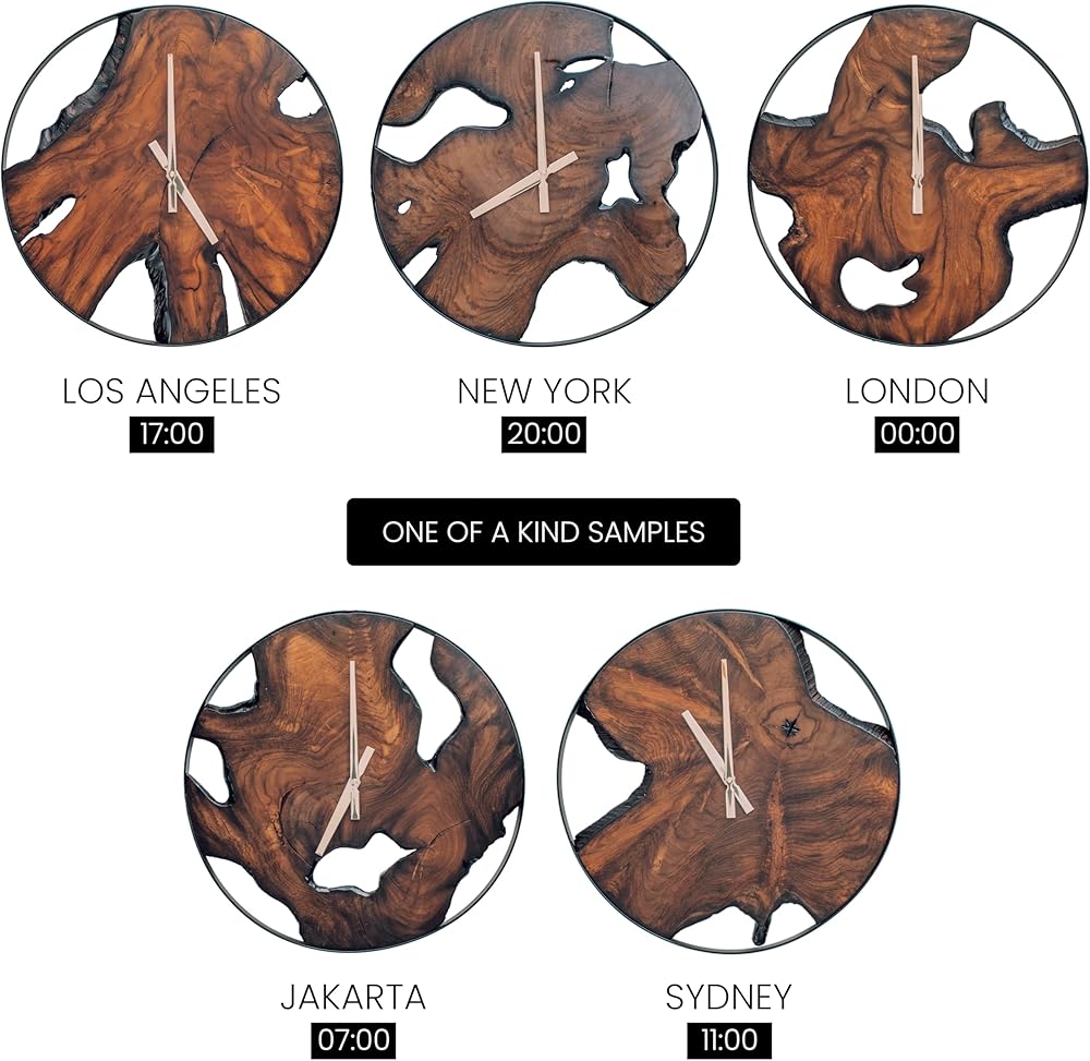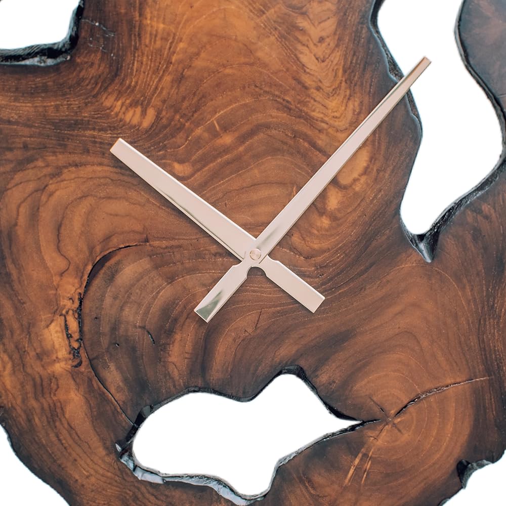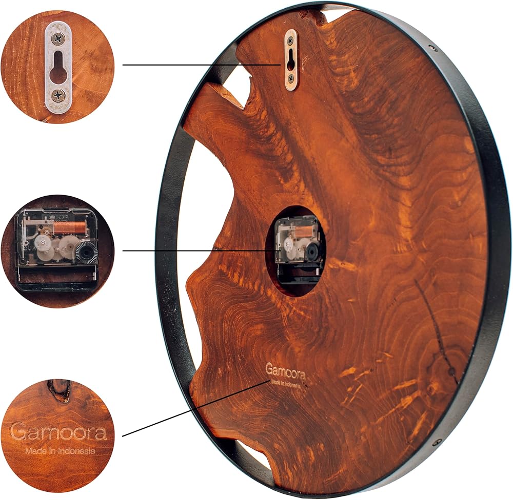 خشب الساج الحقيقي: نحن نصنع كل ساعة حائط عتيقة من خشب الساج الأصلي، وهو نوع من الخشب الاستوائي معروف بمقاومته للانكماش والاعوجاج، مما يجعله مثاليًا لديكور المنزل العصري في الأماكن المغلقة أو الهواء الطلق. خشب الساج الذي نستخدمه لساعة الحائط المزخرفة لدينا يأتي من غابات جافا، مع أعيننا المدربة على أفضل الحبوب الممكنة. إن عيوب الخشب، والشكل غير المنتظم، ودرجة اللون، والحافة الحية لكل قطعة هي جزء من جمال الطبيعة، وبالتالي لا توجد قطعتين متشابهتين.