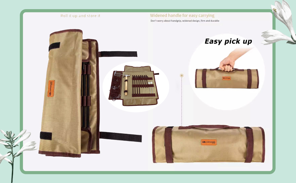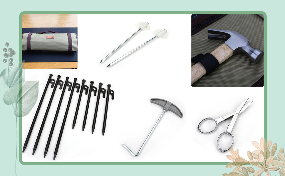 حل تخزين مدروس: حقيبة تخزين من قماش أكسفورد 1680D توفر الأناقة والوظيفة، مع مقاومة للماء للحماية من جميع الأحوال الجوية. يشتمل على حامل مطرقة مؤمن بشريط فيلكرو وجيوب جانبية شبكية لتنظيم حبال الخيمة والأبازيم والمزيد بشكل أنيق.