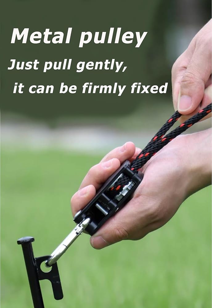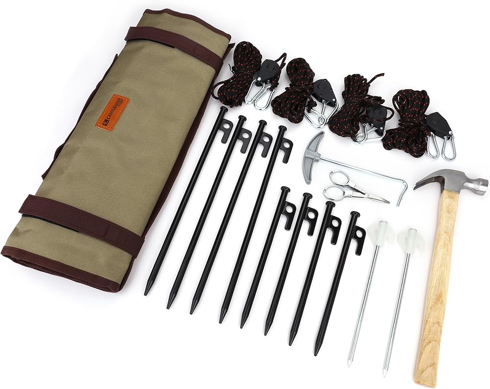 مجموعة أدوات شاملة: تشتمل كل عملية شراء على حقيبة تخزين مجهزة بالكامل تحتوي على 4 حبال عاكسة مقاومة للرياح (كل منها 16.4 قدم)، و10 أوتاد شديدة التحمل، ومستخرج للأوتاد، ومطرقة بمقبض خشبي، ومقص خارجي محمول - جاهز للاستخدام الفوري. يستخدم.