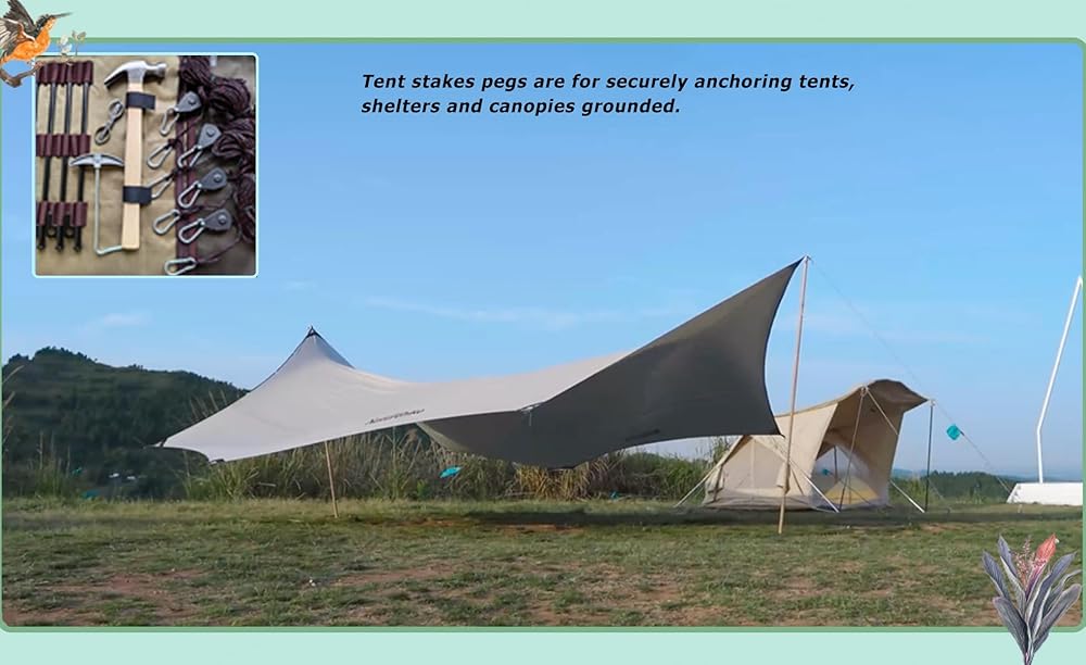 متانة معززة: تتميز مجموعة أوتاد الخيمة المطورة لدينا بـ 10 أوتاد معدنية فاخرة (4 × 11.8 بوصة، 6 × 7.8 بوصة) مصنوعة من معدن قوي مقاوم للصدأ، مما يضمن بقائها مستقيمة وقوية في أي تضاريس. مثالية للمخيمين المتحمسين وعشاق الهواء الطلق.