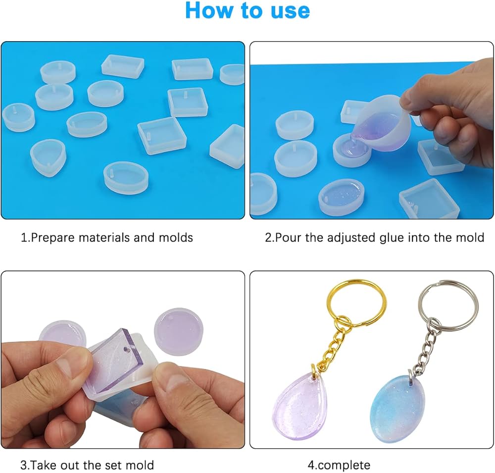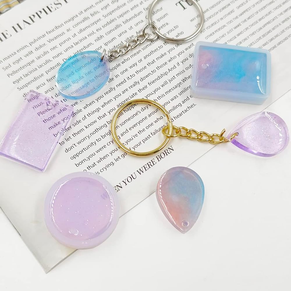 Jewellery Resin Kit: Different shapes of silicone moulds for making jewellery, every epoxy resin mould with hole on it, you can make for necklace pendants, keychains, earrings and so on.