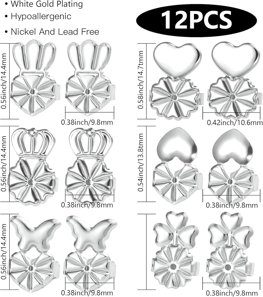 【حجم مناسب وسهل الارتداء】 سوف تحصل على 6 أزواج من الأقراط المطلية بالذهب الأبيض عيار 18 قيراط على وجه التحديد، 0.56 بوصة × 0.38 بوصة أقراط جزرة/تاج/فراشة، 0.58 بوصة × 0.42 بوصة، أقراط على شكل قلب 0.54 بوصة × 0.38 بوصة ، وأقراط البرسيم مقاس 0.6 × 0.38 بوصة، قفل خلفي. لا يوجد فقدان أو انزلاق لسهولة الارتداء والخلع.