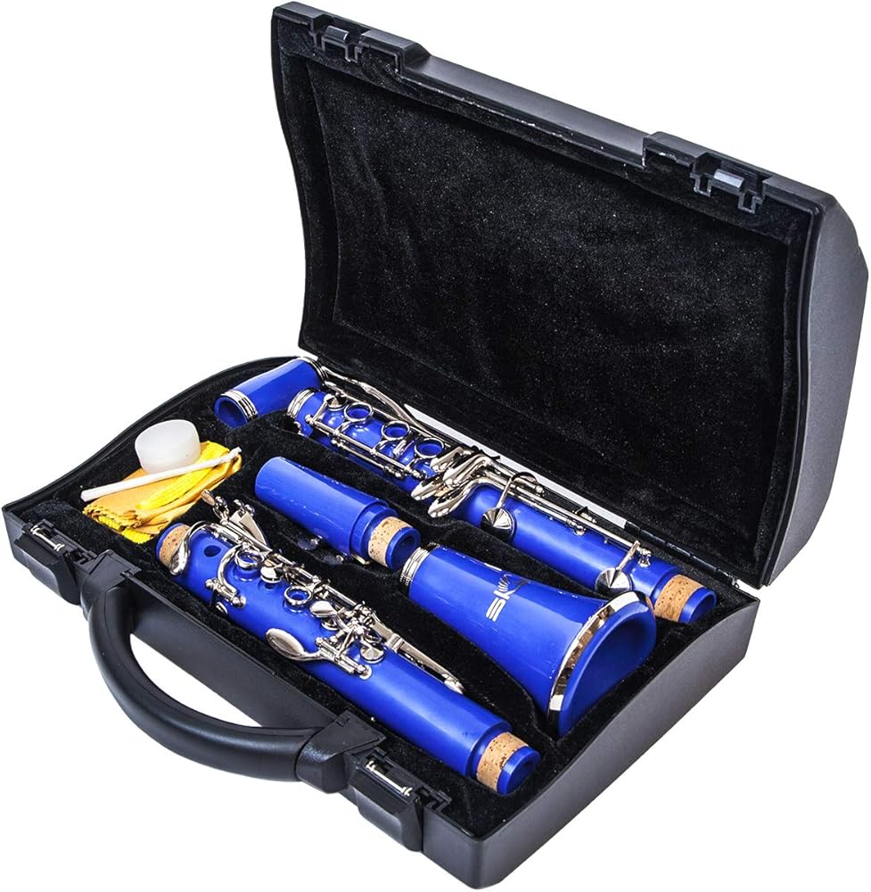 This is a brand new B flat clarinet package. This high quality High impact ABS body is built in with nickel-silver keys. This German design style clarinet has beautiful tonal quality with precision milled embouchure hole for good intonation and sound that comes with all high quality components including the corks, springs, pads etc.