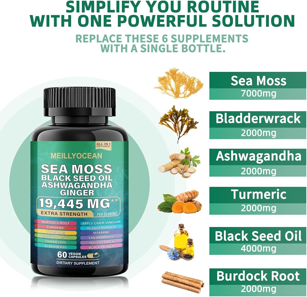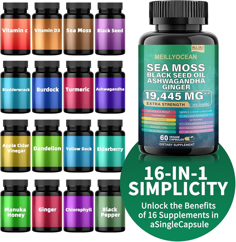إمداد طويل الأمد: استفد من 90 يومًا كاملة مع زجاجة الإمداد التي تكفي لمدة ثلاثة أشهر. مملوء بمزيج قوي من مكملات طحالب البحر، وكبسولات زيت الحبة السوداء، وكبسولات أشواغاندا، وجذور الأرقطيون، ومسحوق المثانة، والزنجبيل، والكركم، ويوفر هذا المزيج العديد من المزايا. تخلص من العديد من المكملات الغذائية المختلفة التي تشوش خزانتك وقم بتبسيط نظامك من خلال حل شامل واحد فقط. نقدم لكم تركيبة مبتكرة 16 في 1 تجمع بين مسحوق طحالب البحر وزيت الحبة السوداء وكبسولات الأشواغاندا وجذور الأرقطيون.