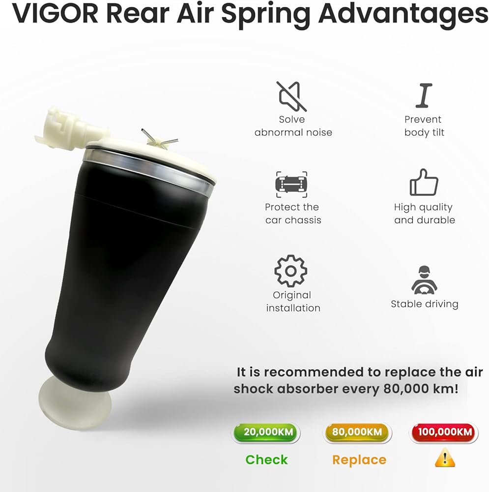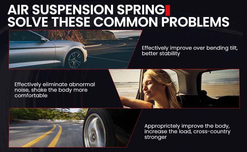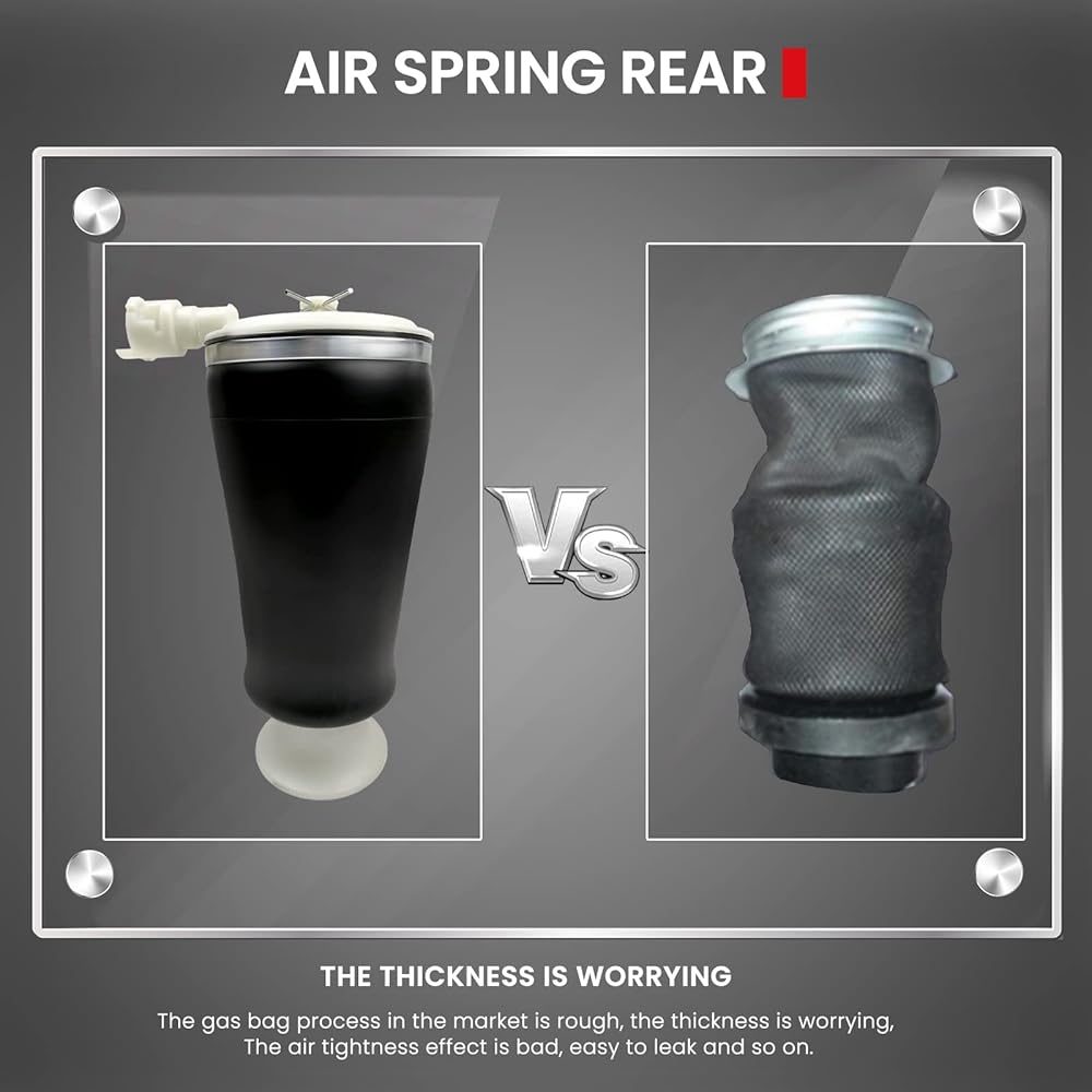 【جودة ممتازة】الرحلة الهوائية مصنوعة من مطاط مستورد عالي الكثافة، وأكثر متانة وأداء تحميل أفضل من تعليق الهواء العادي، مما يوفر لك تجربة قيادة أفضل بعد الاستبدال.