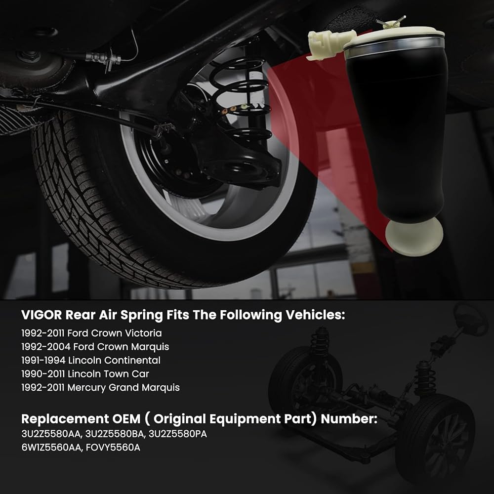 【قائمة توافق نماذج المركبات】زنبرك تعليق هوائي خلفي متوافق مع 1992-2011 Ford Crown Victoria، 1992-2004 Ford Crown Marquis، 1991-1994 Lincoln Continental، 1990-2011 Lincoln Town Car، 1992-2011 Mercury Grand Marquis؛ مزيد من معلومات التوافق يرجى التحقق من صفحة وصف المنتج أدناه.
