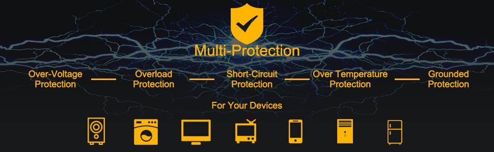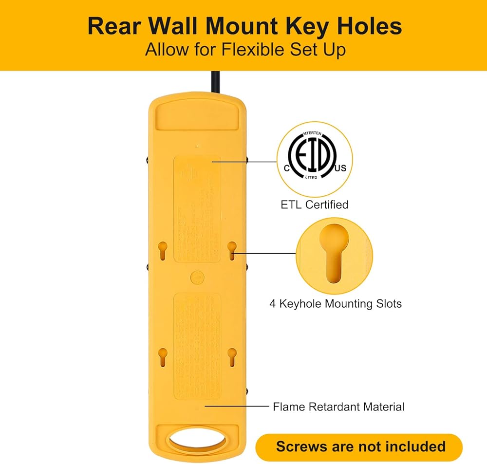 【مدرج في قائمة UL (رقم STD 1363 و1449) تصنيف 1800 جول، ميزات أمان متميزة】شرائط الطاقة ذات منافذ كافية لتوصيل كل ما تحتاجه بالإضافة إلى قدرات الحماية من زيادة التيار لمنع تلف المعدات باهظة الثمن. بالنسبة لأجهزة الكمبيوتر المحمولة، وأجهزة الكمبيوتر المكتبية، والطابعات، وأجهزة التوجيه اللاسلكية وغيرها من الأجهزة الإلكترونية، يمكن أن يساعد شريط الطاقة عالي الجودة وواقي زيادة التيار في منع الضرر الناتج عن زيادة الطاقة والحفاظ على عمل التكنولوجيا الخاصة بك.