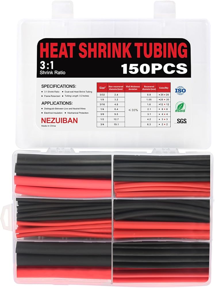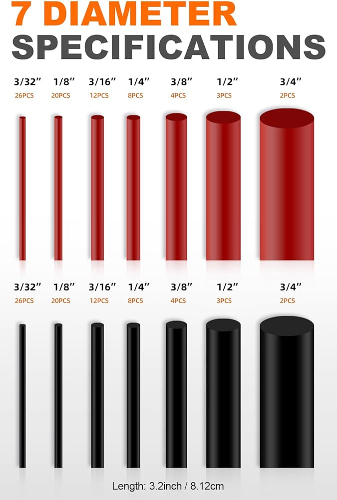 Heat Shrink Tubing Kit - 3:1 Ratio Adhesive Lined,150 PCS.Black and Red.