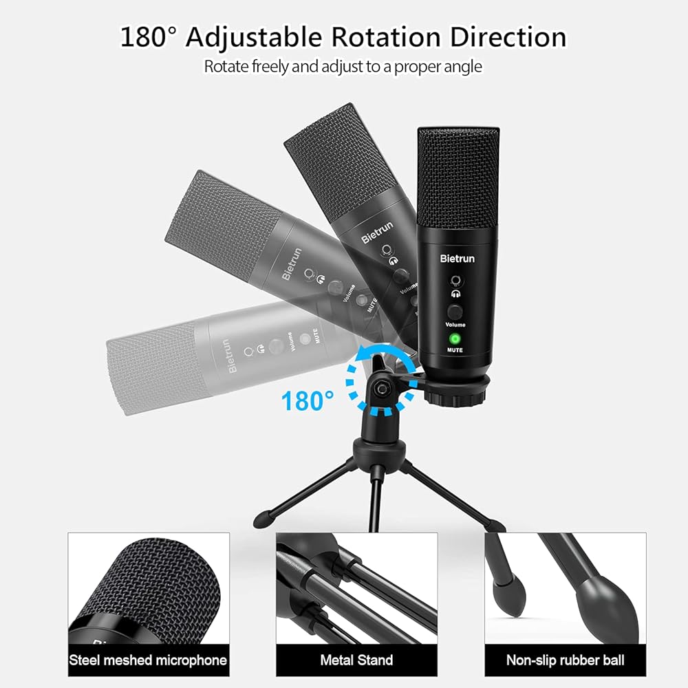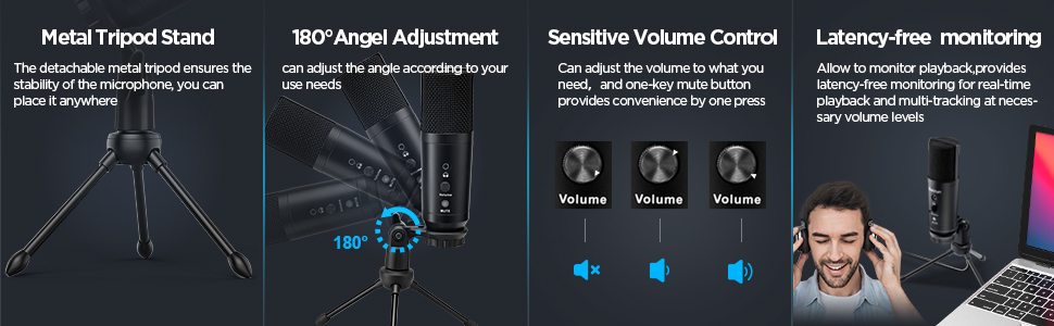【ميكروفون يو اس بي متعدد الوظائف】: ◆ ميكروفون مصمم مع مقبس شاشة سماعة رأس 3.5 ملم، يمكنه مراقبة جودة الصوت والتحقق منها في الوقت الحقيقي مع مقبض إضافي لمستوى صوت سماعة الأذن قابل للتعديل. ◆ زر واحد لكتم الصوت. ◆يمكن أن يخبرك مؤشر ليد بحالة عمل الميكروفون في أي وقت.