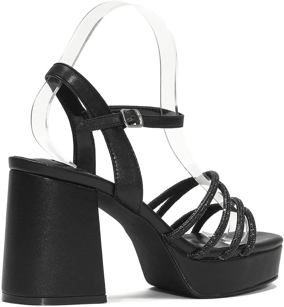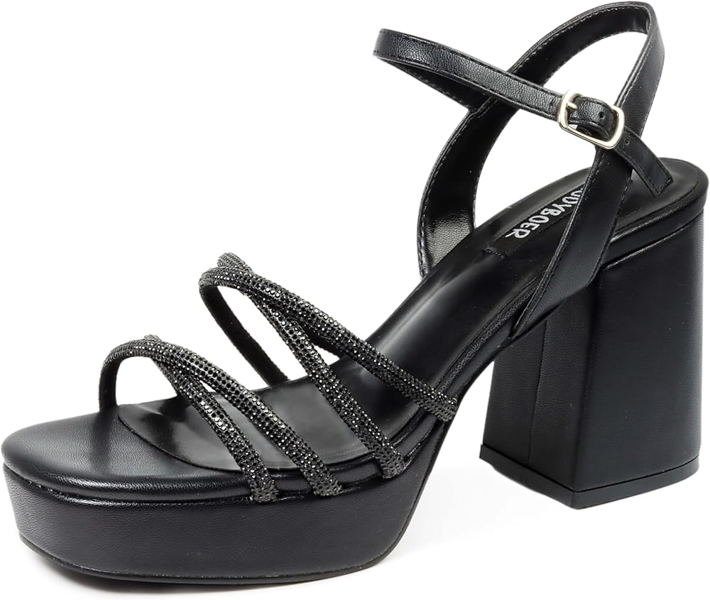 تصميم حجر الراين: صنادل ذات نعل سميك مزينة بأحجار الراين على الأشرطة ستجعلك مركز الاهتمام سواء للارتداء اليومي أو المناسبات الخاصة.