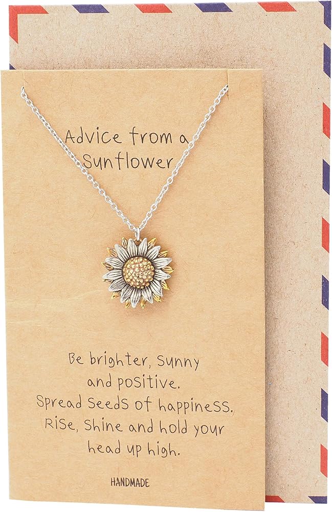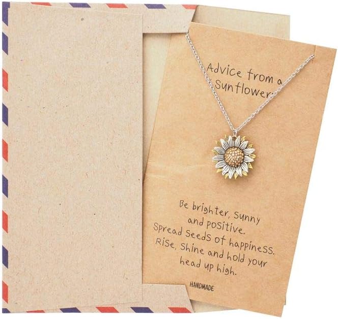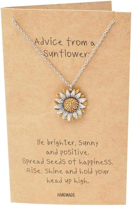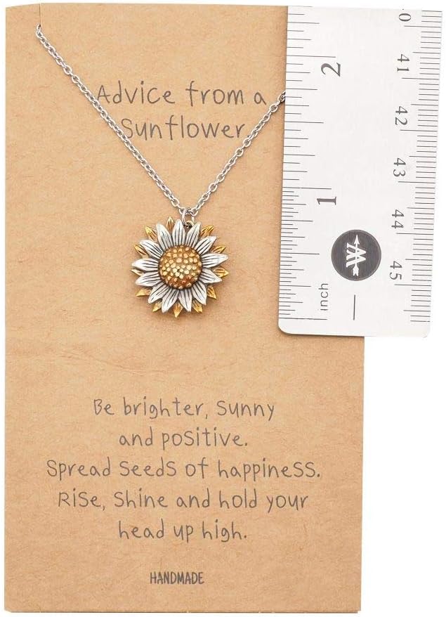 Inspirational Greeting Card: Every Sunflower Necklace comes with a thoughtfully curated inspirational greeting card, elevating the entire unboxing experience. This additional touch sets our brand apart by combining meaningful messages with beautiful jewelry.