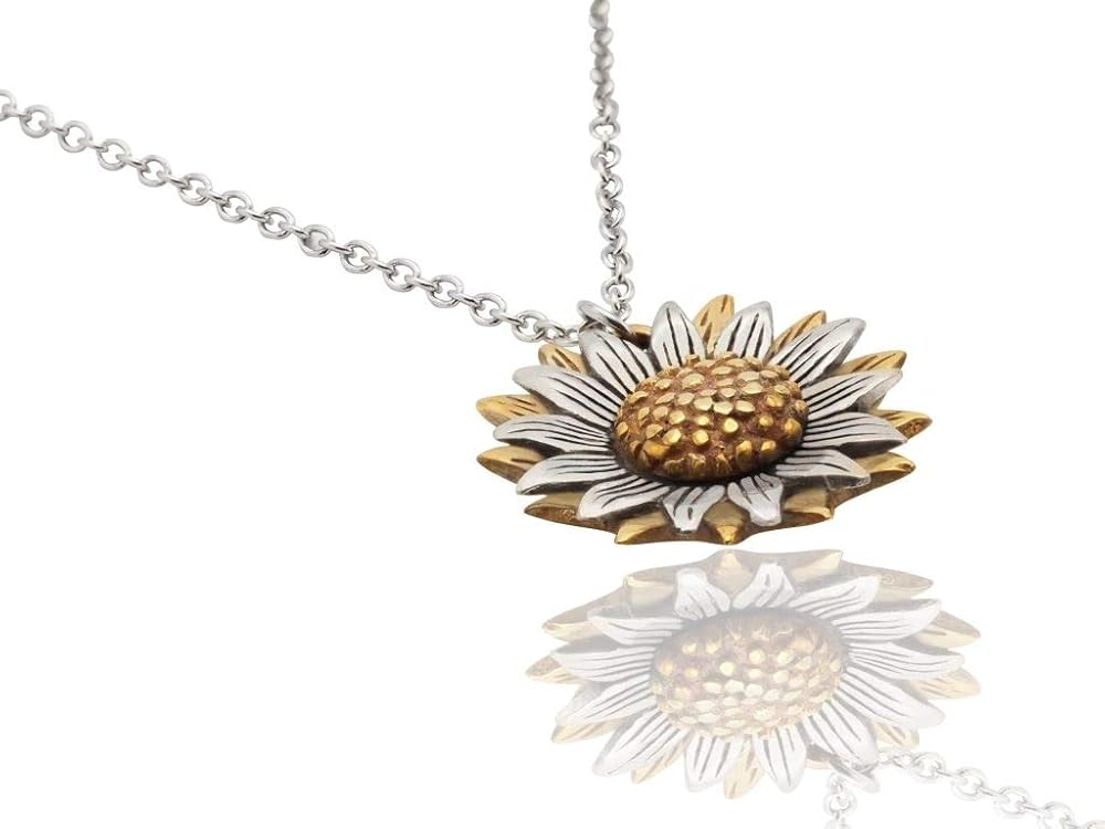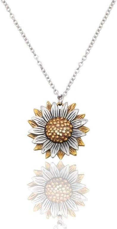 Introducing the Quan Jewelry Sunflower Necklace for Women, a radiant and meaningful gift designed to celebrate the warmth and beauty of motherhood. This exquisite piece features a delicate sunflower pendant in a charming two-tone finish, symbolizing joy, positivity, and the enduring bond between a mother and her child. Crafted with precision and attention to detail, the Sunflower Necklace exudes elegance and grace. The pendant's intricate design captures the essence of a sunflower in full bloom, accentuated by the harmonious blend of gold and silver tones. The result is a timeless accessory that effortlessly complements any style, adding a touch of sophistication to every occasion. To make this necklace even more special, it comes with an inspirational greeting card. The carefully curated message on the card expresses gratitude and admiration for the incredible journey of motherhood. Whether you're treating your own mother or a cherished mother figure in your life, this thoughtful combination of a stunning necklace and heartfelt words creates a memorable and sentimental gift. The Quan Jewelry Sunflower Necklace is not just a beautiful accessory; it's a symbol of love, strength, and the everlasting connection between mothers and their children. Elevate your gifting experience and convey your appreciation with this enchanting necklace that captures the essence of a sun-kissed field in full bloom.