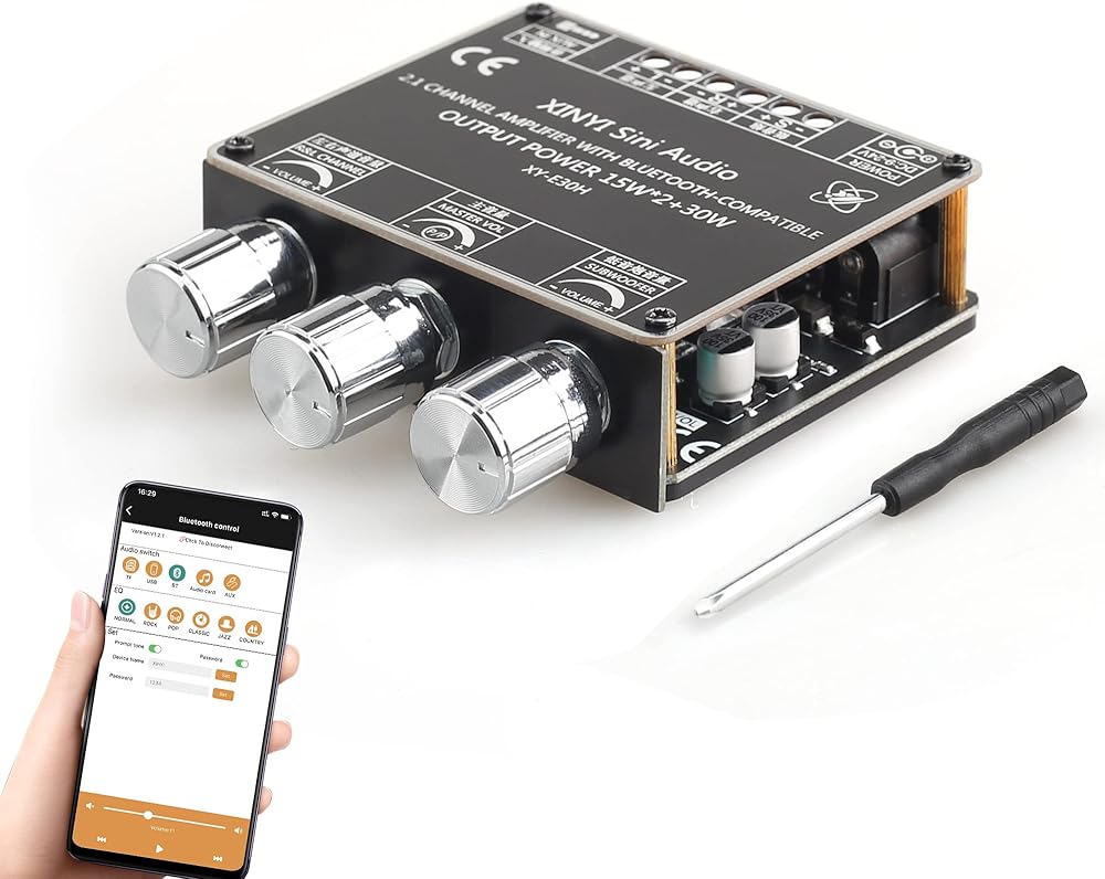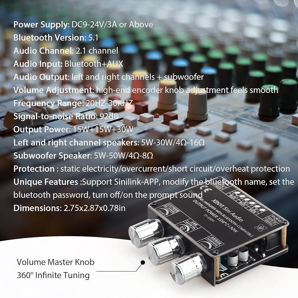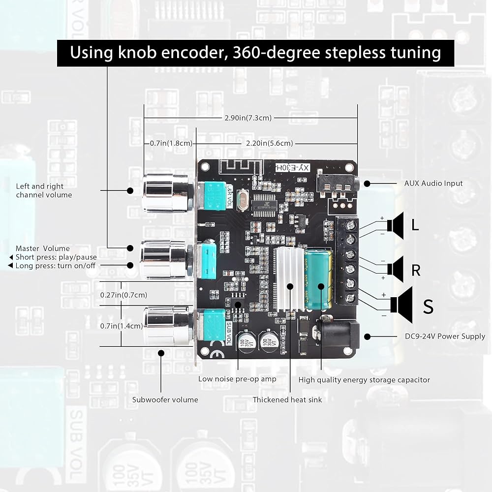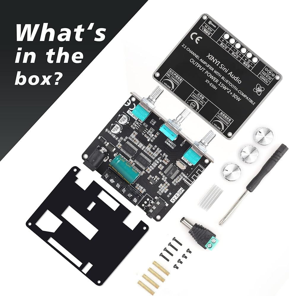 لوحة مضخم طاقة بلوتوث E30H 2.1 قناة 15 وات*2+30 وات تدعم اسم بلوتوث مخصص، وحدة مضخم طاقة الصوت 12 فولت-24 فولت لمكبر صوت بلوتوث DIY