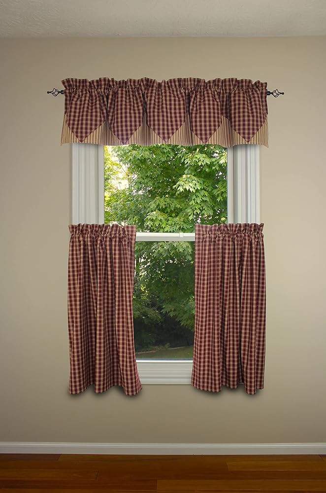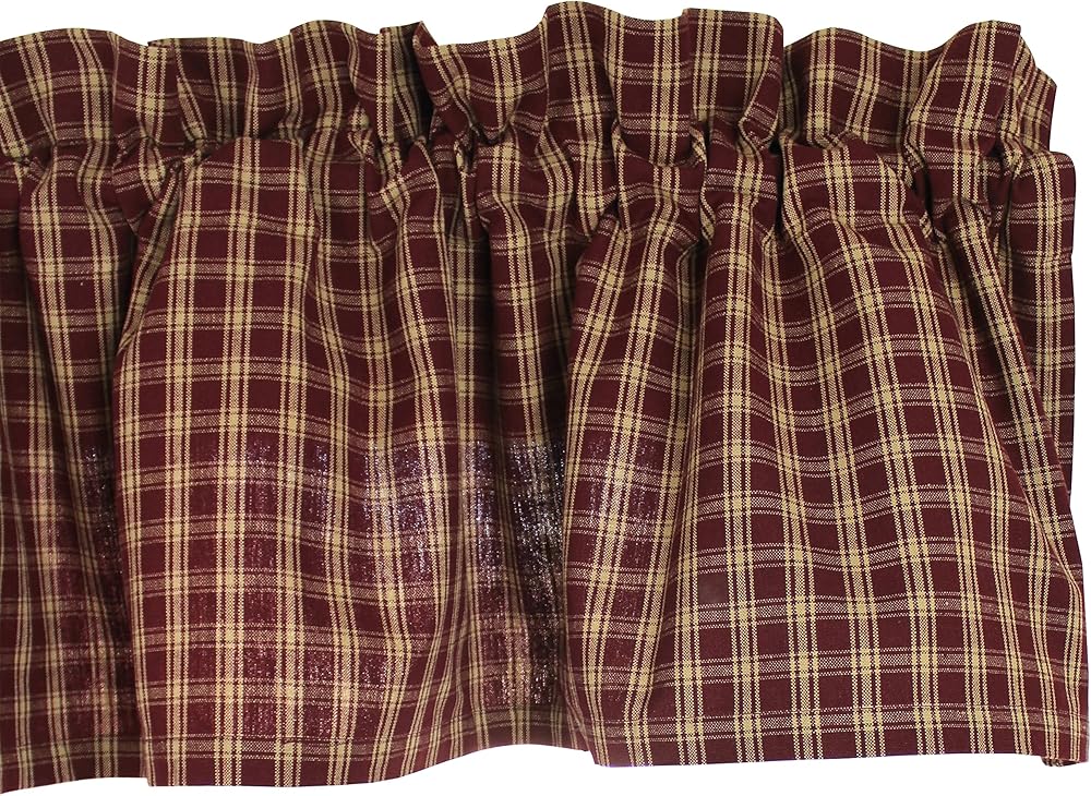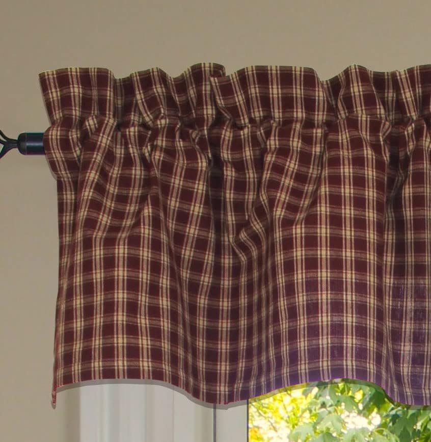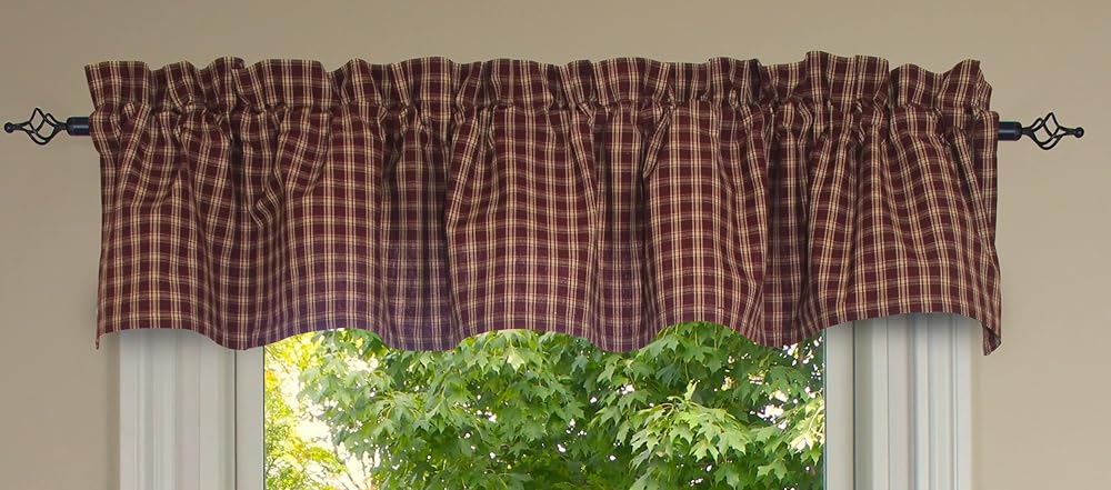 Create an enduring look with the Country Classics Wine Valance. Valance measures 72" x 14" and has a 2" header and a 2.5" rod pocket. Made from 100% cotton and unlined. Priced and sold individually. Designed and manufactured exclusively for Primitive Home Decors. Dry Clean.