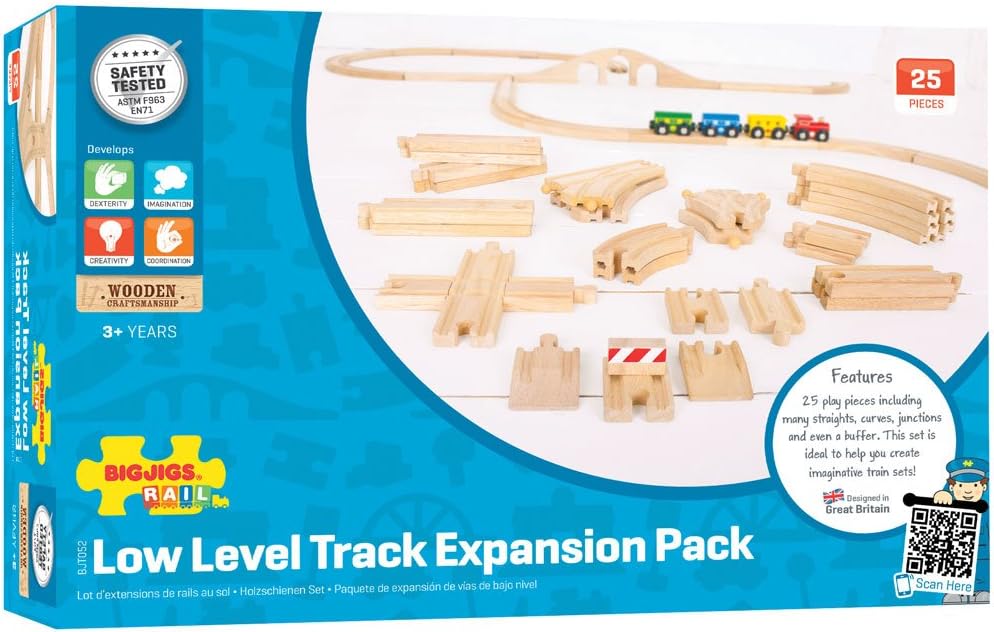 توسيع المسار المنخفض المستوى من Bigjigs Rail - مجموعة 25 قطعة - العلامات التجارية الرئيسية الأخرى للسكك الحديدية الخشبية متوافقة