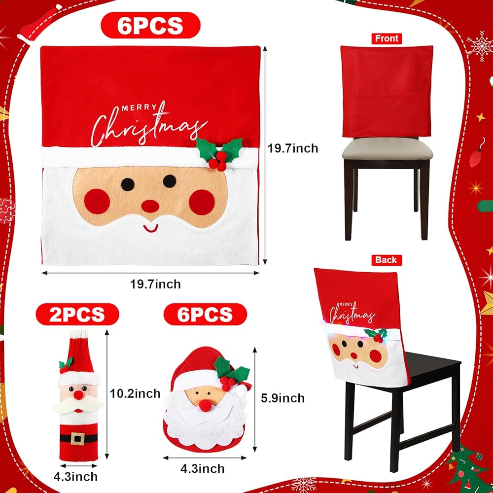 • Exquisite Combination: you will receive 6 pieces of Christmas chair covers, 6 pieces of Christmas cutlery holders, and 2 pieces of wine bottle covers; The quantity will meet your holiday use and ensure a complete look for your Christmas setup