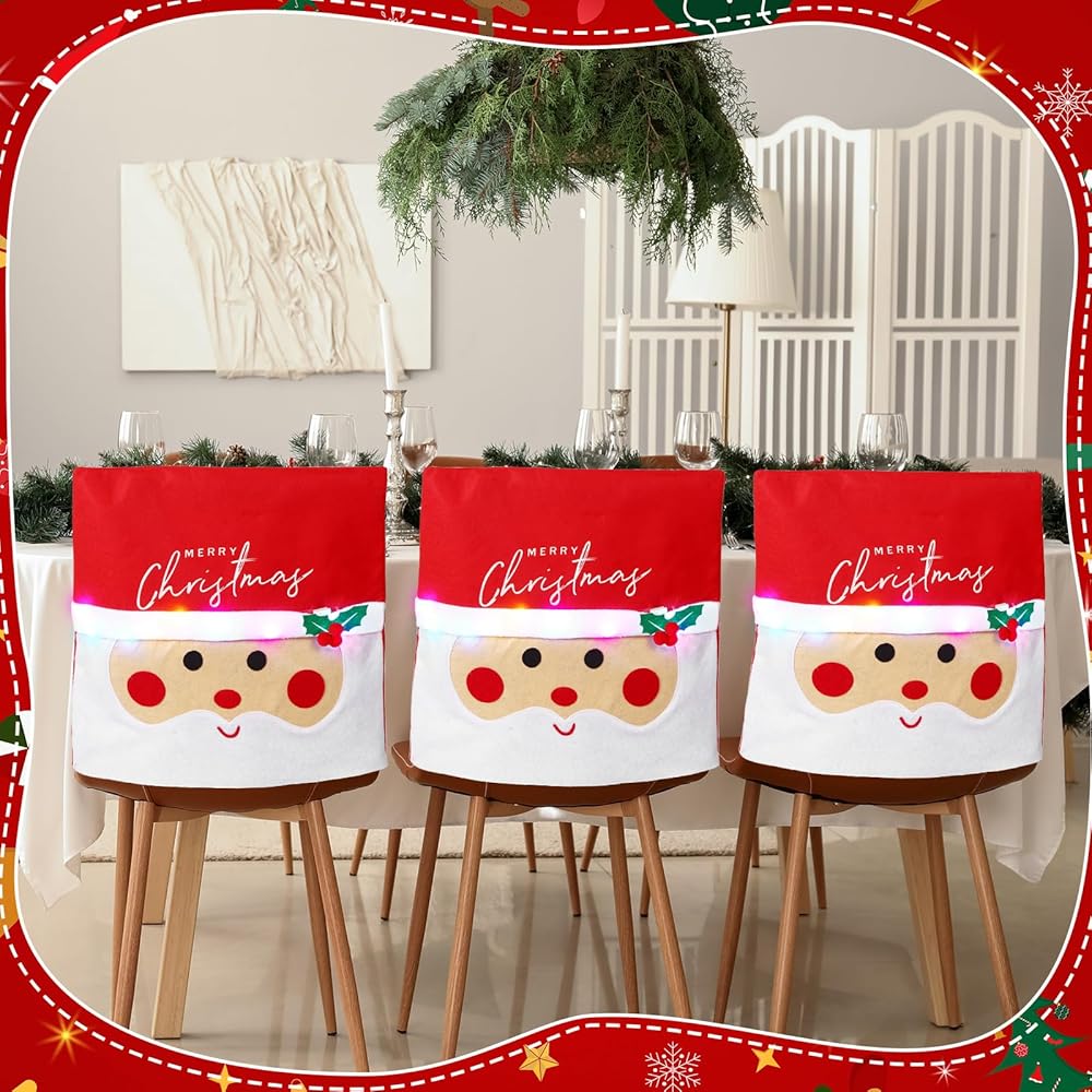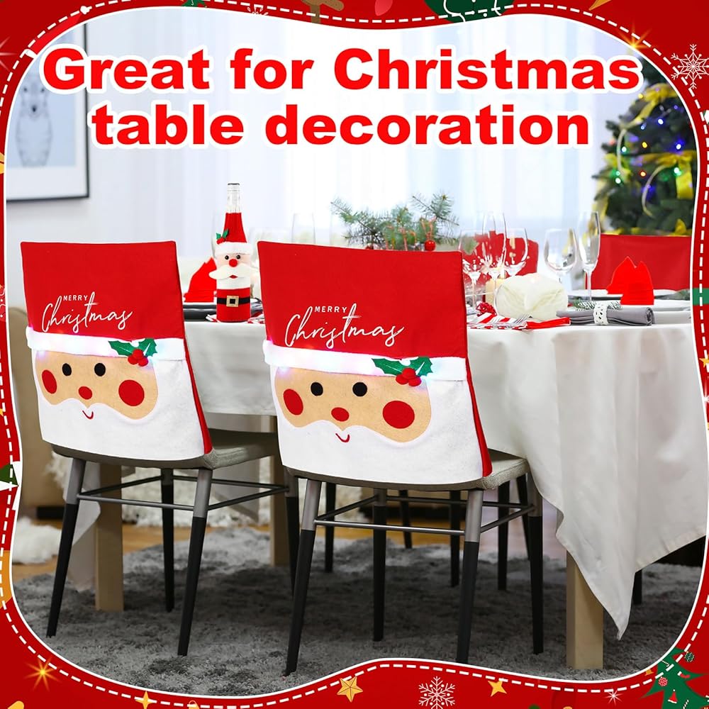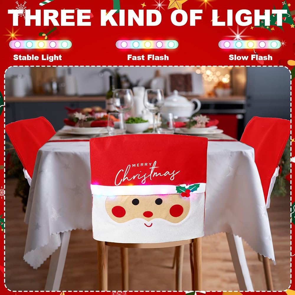 • Material Selection: our Christmas back chair covers are made from quality felt material with the size of about 19.7 x 19.7 inches/ 50 x 50 cm, ensuring they are durable and strong, suitable for extended use, they feature LED lights creating a warm and inviting ambiance, the light has 3 flashing modes namely fast flash, slow flash, and constant light, which can be adjusted at your will; Please remove the insulating sheet at the switch before using