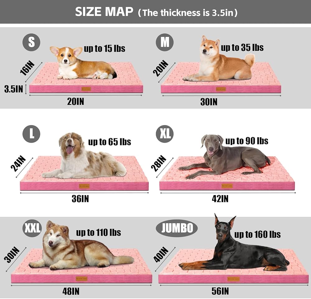 🐕المقاس المناسب: هناك 8 ألوان متاحة، ولكل لون، هناك 6 مقاسات قياسية في نطاق 20x15 30x20 36x24 42x28 48x30 56x40 بوصة للاختيار من بينها. S: 20 بوصة × 15 بوصة حتى 15 رطل، M: 30 بوصة × 20 بوصة حتى 35 رطلًا، L: 36 بوصة × 24 بوصة حتى 65 رطلاً، XL: 42 بوصة × 28 بوصة حتى 90 رطلاً، XXL: 48 بوصة × 30 بوصة حتى 110 رطل، جامبو: 56 بوصة × 40 بوصة '' ما يصل إلى 160 رطلا.
