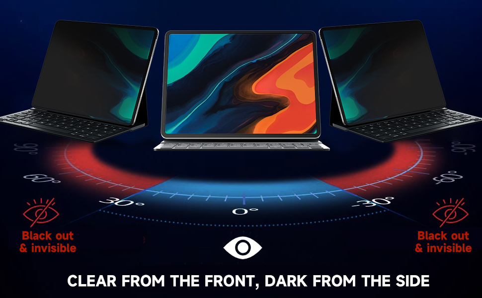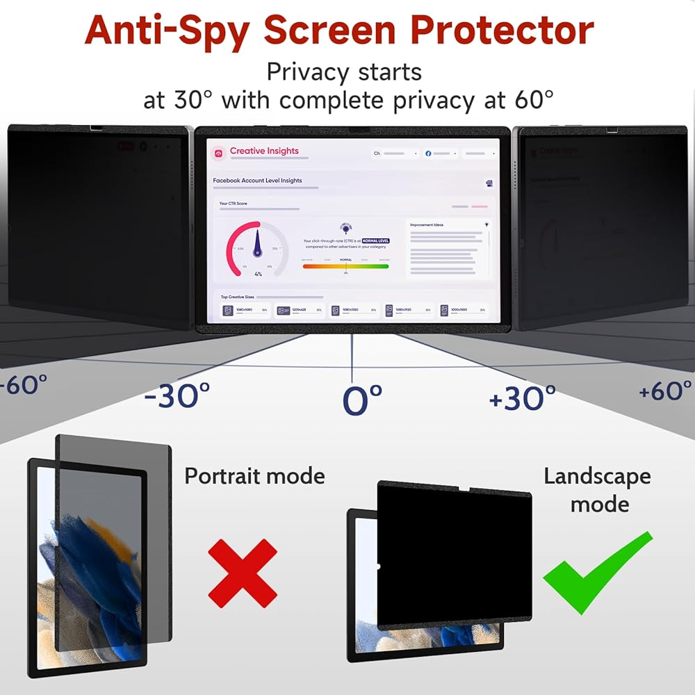 【خصوصية فائقة】تحدد زاوية العرض إلى +/- 30 درجة، شاشة الخصوصية لجهاز Samsung Galaxy Tab S7 FE مقاس 12.4 بوصة ستحجب شاشتك عند مشاهدتها من الجانب مع الحفاظ على شاشة واضحة تمامًا للأمام. هل أنت قلق من اختلاس النظر في العيون التي لا تلاحظها؟ احصل على واقي شاشة الخصوصية لجهاز Galaxy Tab S9 Plus لحماية معلوماتك الحساسة وكلمات المرور والمحتوى الشخصي وما إلى ذلك التي تخترق الخارج