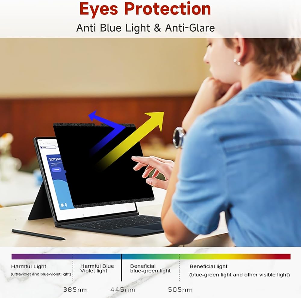 【حماية العين】تحجب التكنولوجيا البصرية المتقدمة 97% من الضوء الأزرق والأشعة فوق البنفسجية، وتحمي عينيك بشكل فعال من أضرار العين والتعب البصري وألم العين والصداع. السطح الناعم غير اللامع يقلل الوهج بنسبة 98%، لذلك لم يعد هناك ما يدعو للقلق. حول شاشة ضبابية بسبب الوهج. يحمي واقي شاشة الخصوصية لجهاز Galaxy Tab S7 FE أيضًا شاشتك من الغبار والخدوش أثناء الاستخدام اليومي.