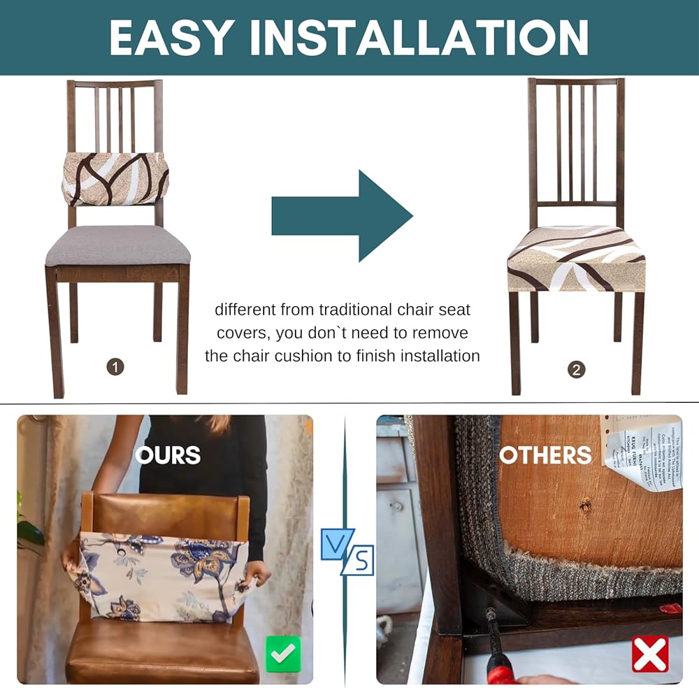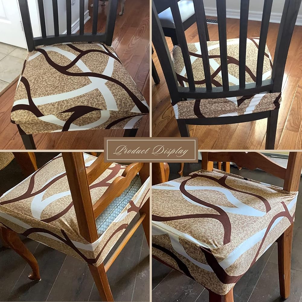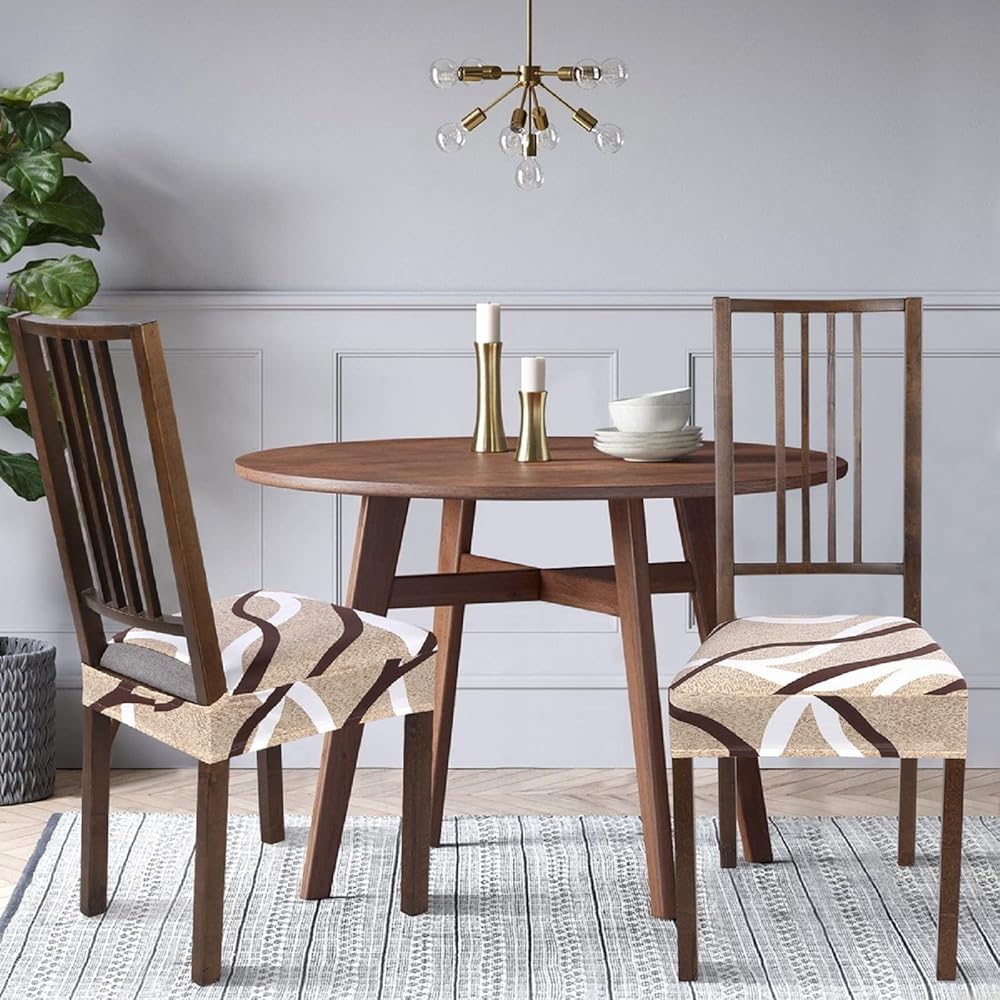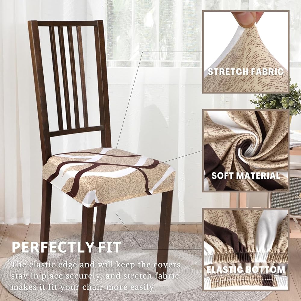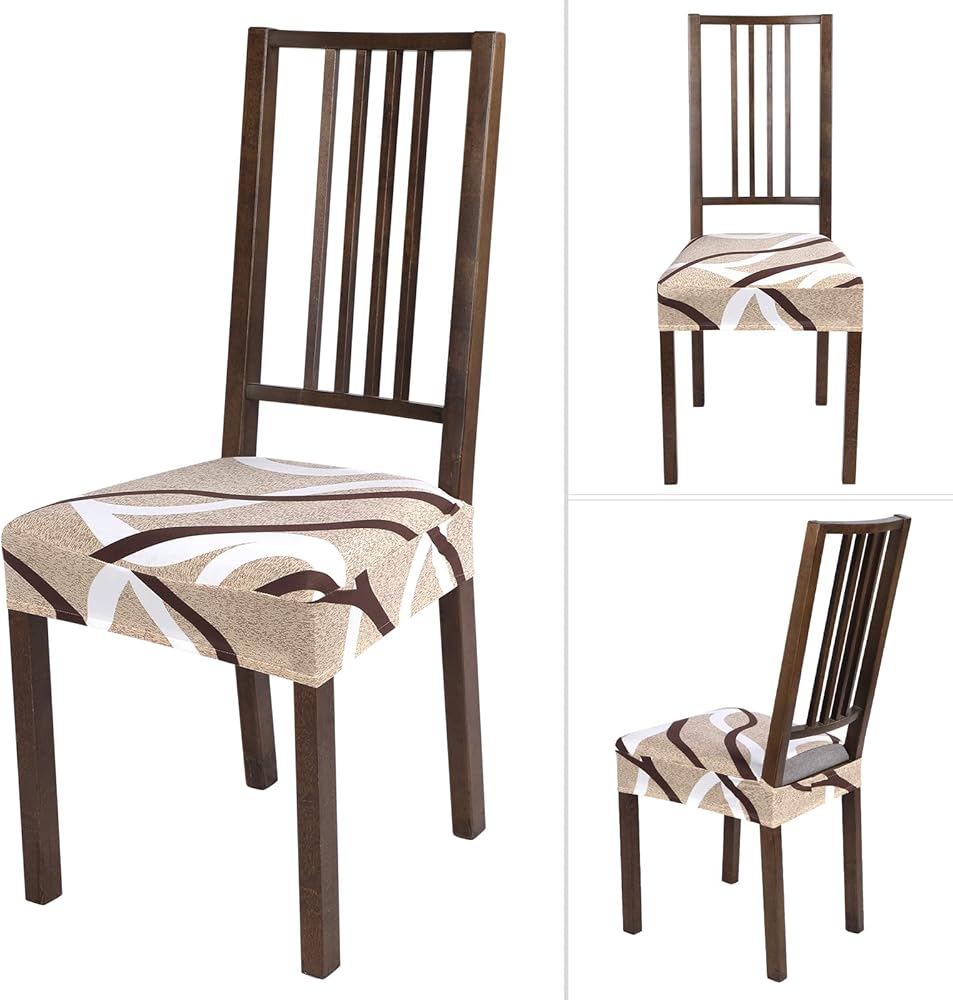 مجموعة أغطية مقاعد قابلة للتمدد من SearchI مكونة من 4 قطع، أغطية مقاعد ناعمة قابلة للإزالة وقابلة للغسل لكراسي الطعام، وواقي مقعد غرفة الطعام (بدون خلفية، بيج)